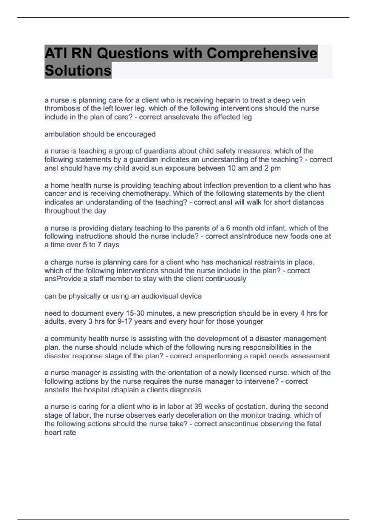 ATI RN Questions with Comprehensive Solutions 2023