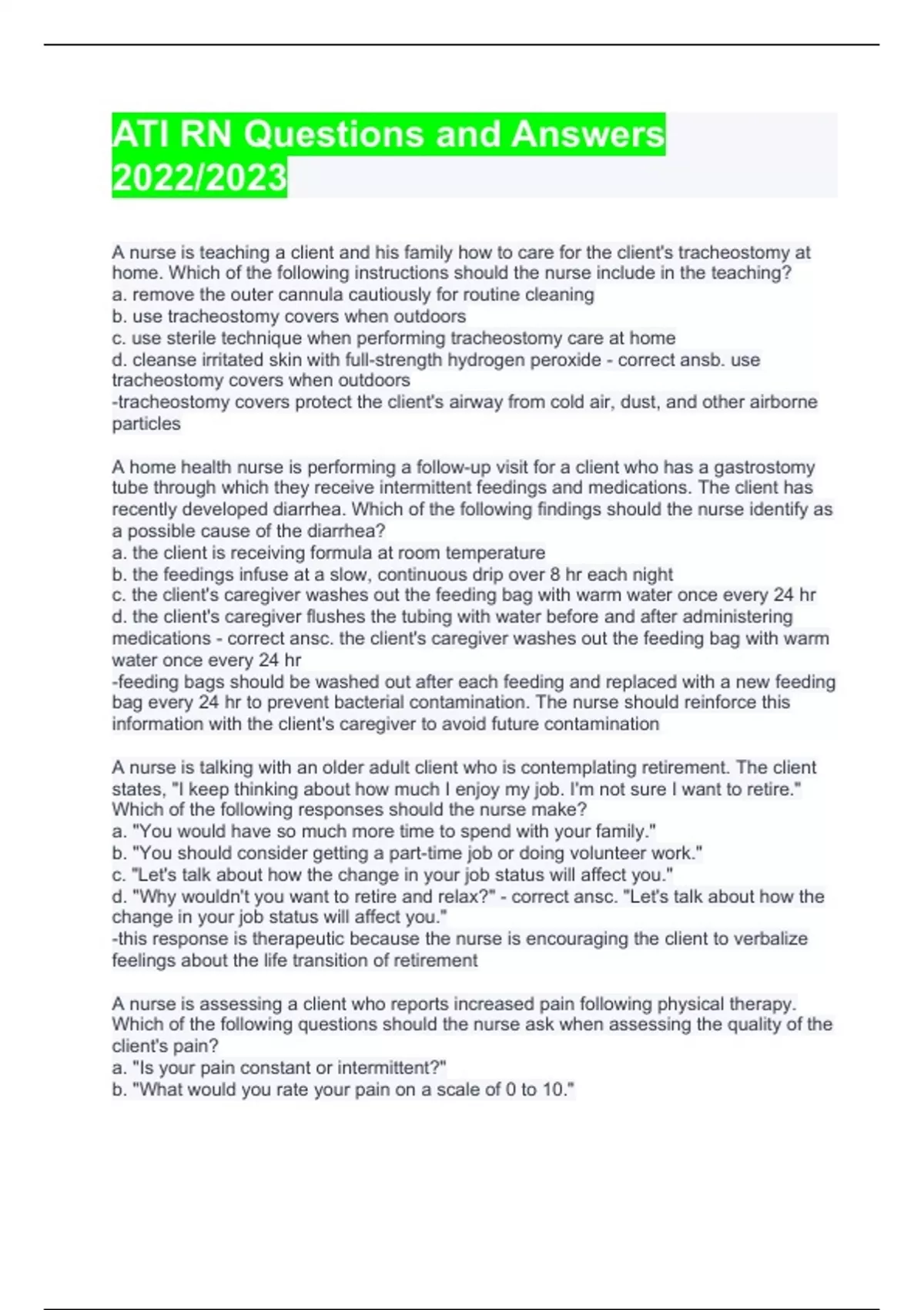 ati rn questions and answers 2023