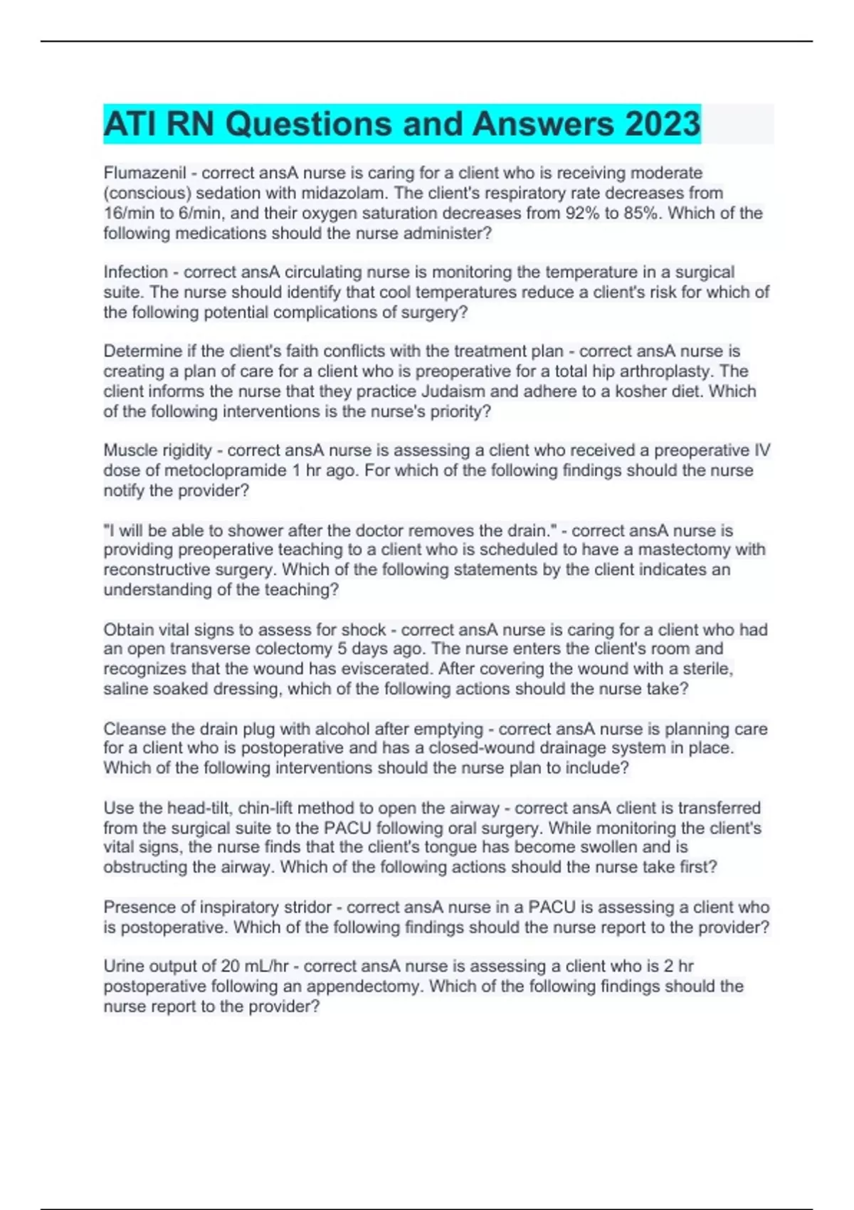 ATI RN Questions and Answers 2023 rated A+ 2023