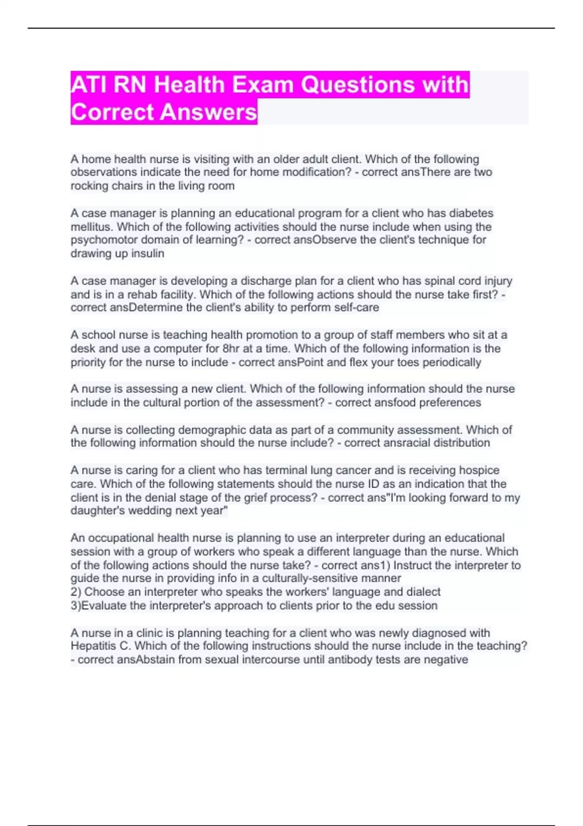 ATI RN Health Exam Questions with Correct Answers 2023