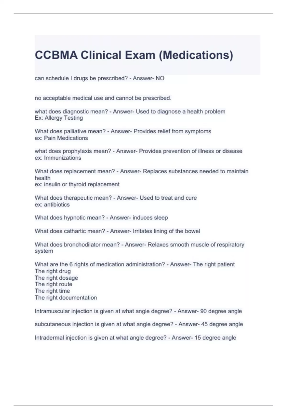 CCBMA Clinical Exam (Medications) Questions with correct Answers