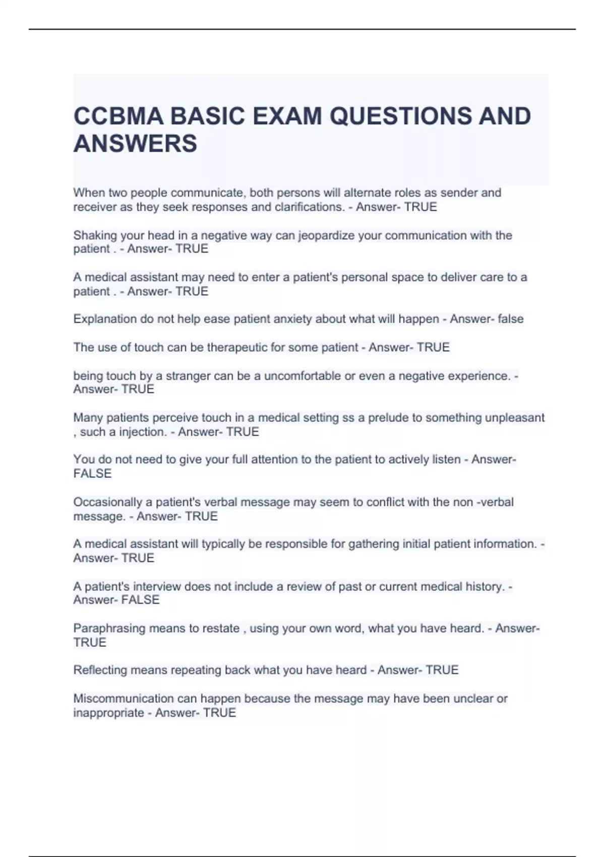 CCBMA BASIC EXAM QUESTIONS AND ANSWERS