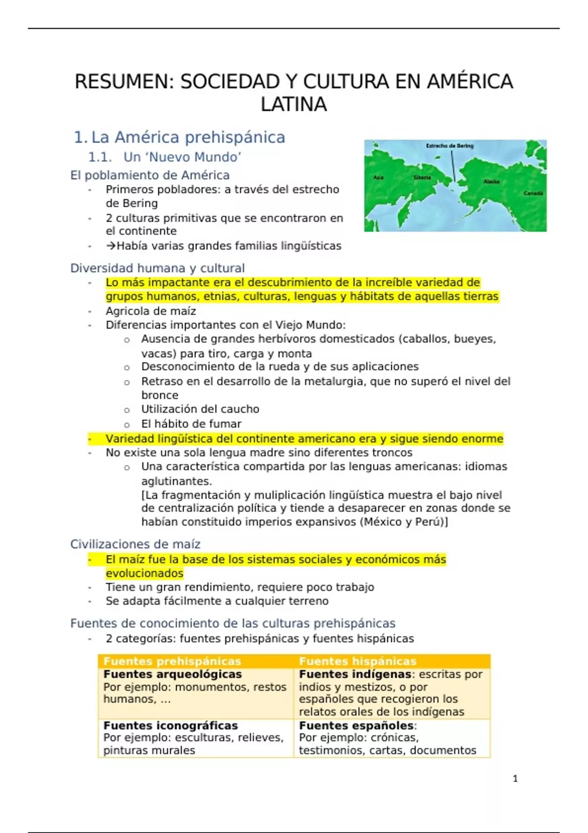 RESUMEN: SOCIEDAD Y CULTURA EN AMÉRICA