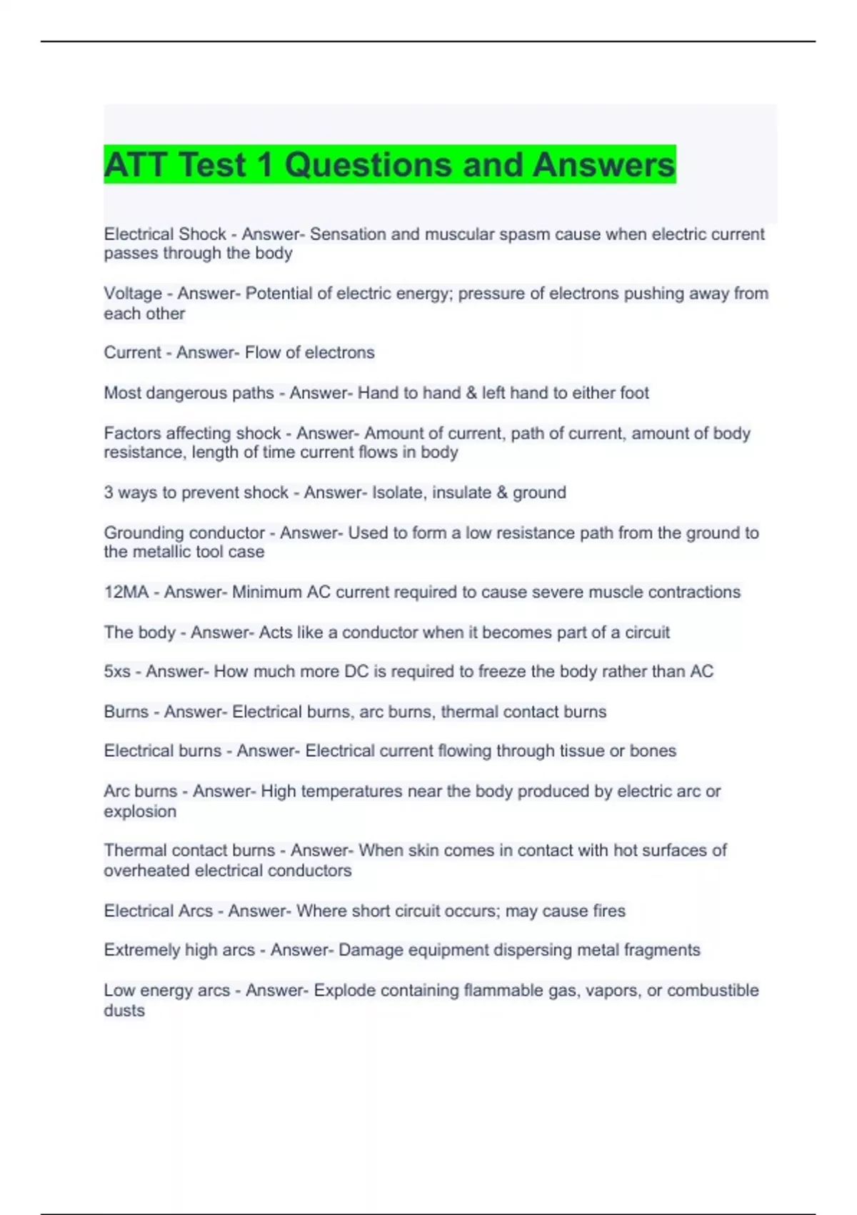 att test 1 questions and answers