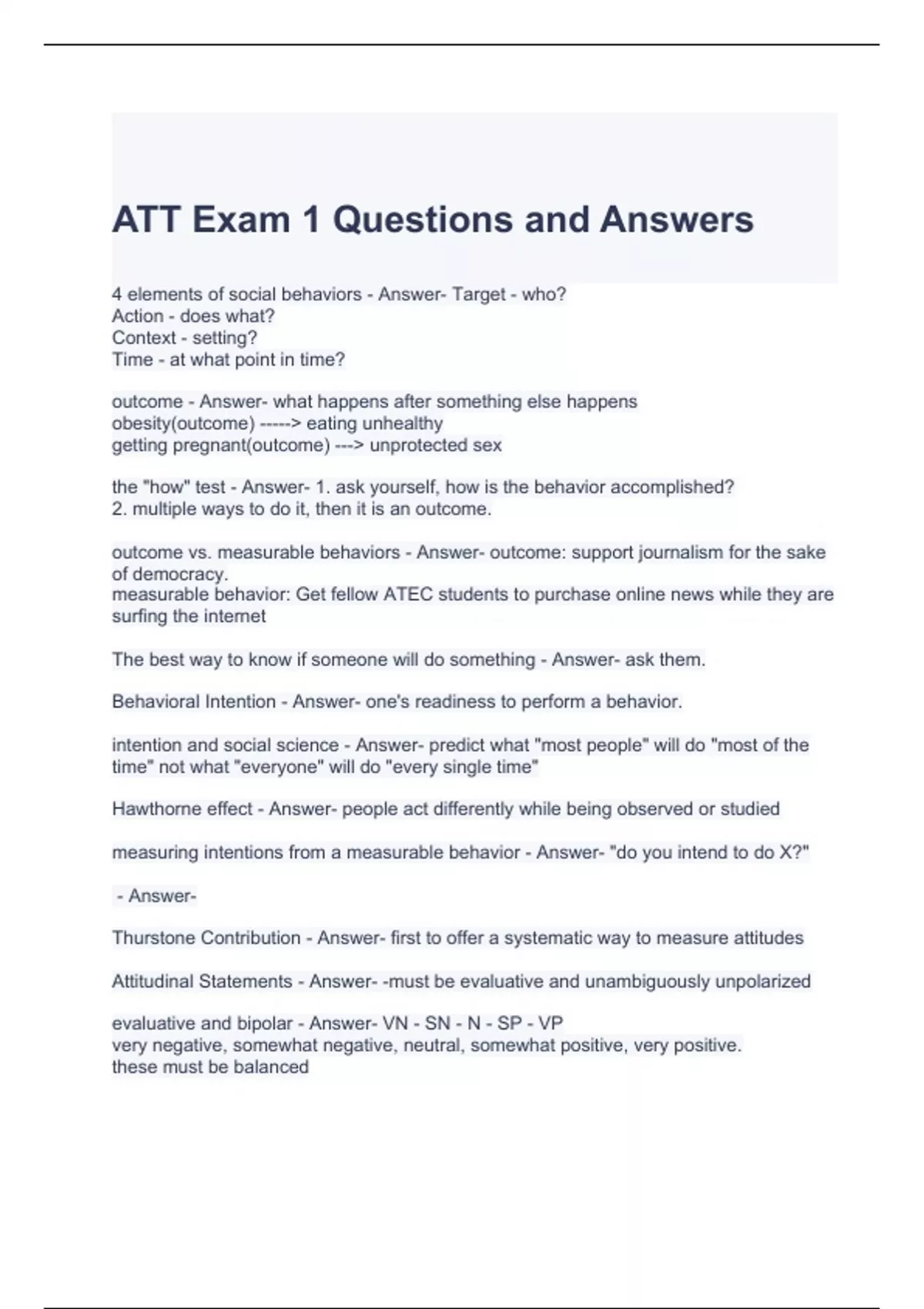 att exam 1 questions and answers