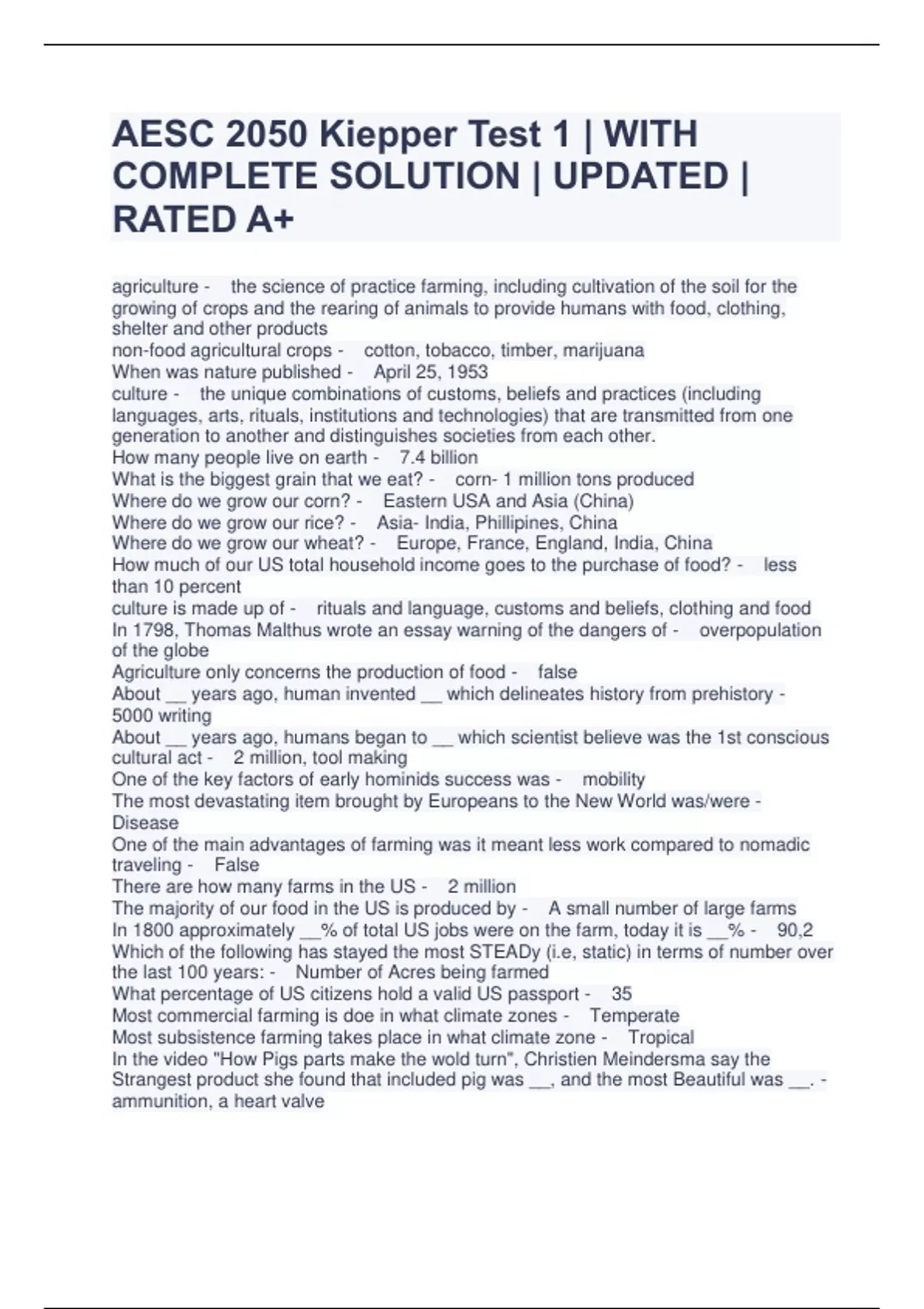 AESC 2050 Kiepper Test 1 | WITH COMPLETE SOLUTION | UPDATED | RATED A+