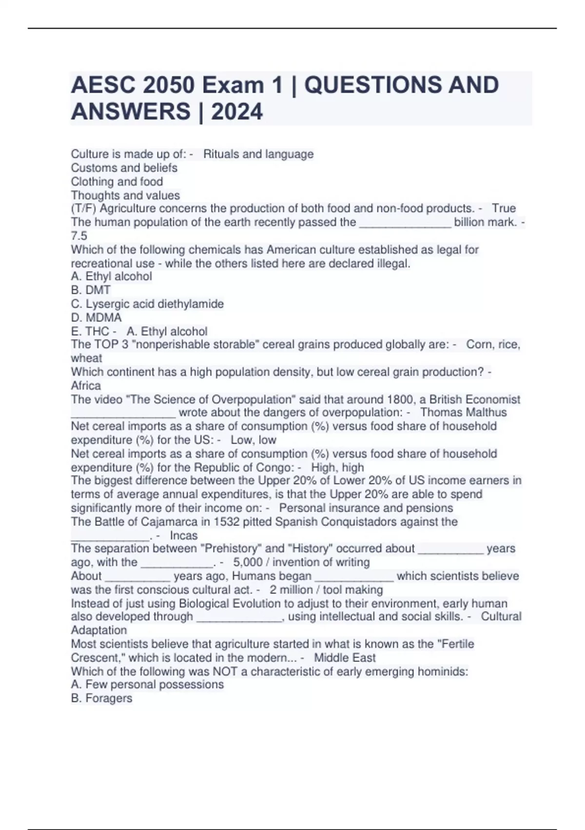 AESC 2050 Exam 1 | QUESTIONS AND ANSWERS | 2024