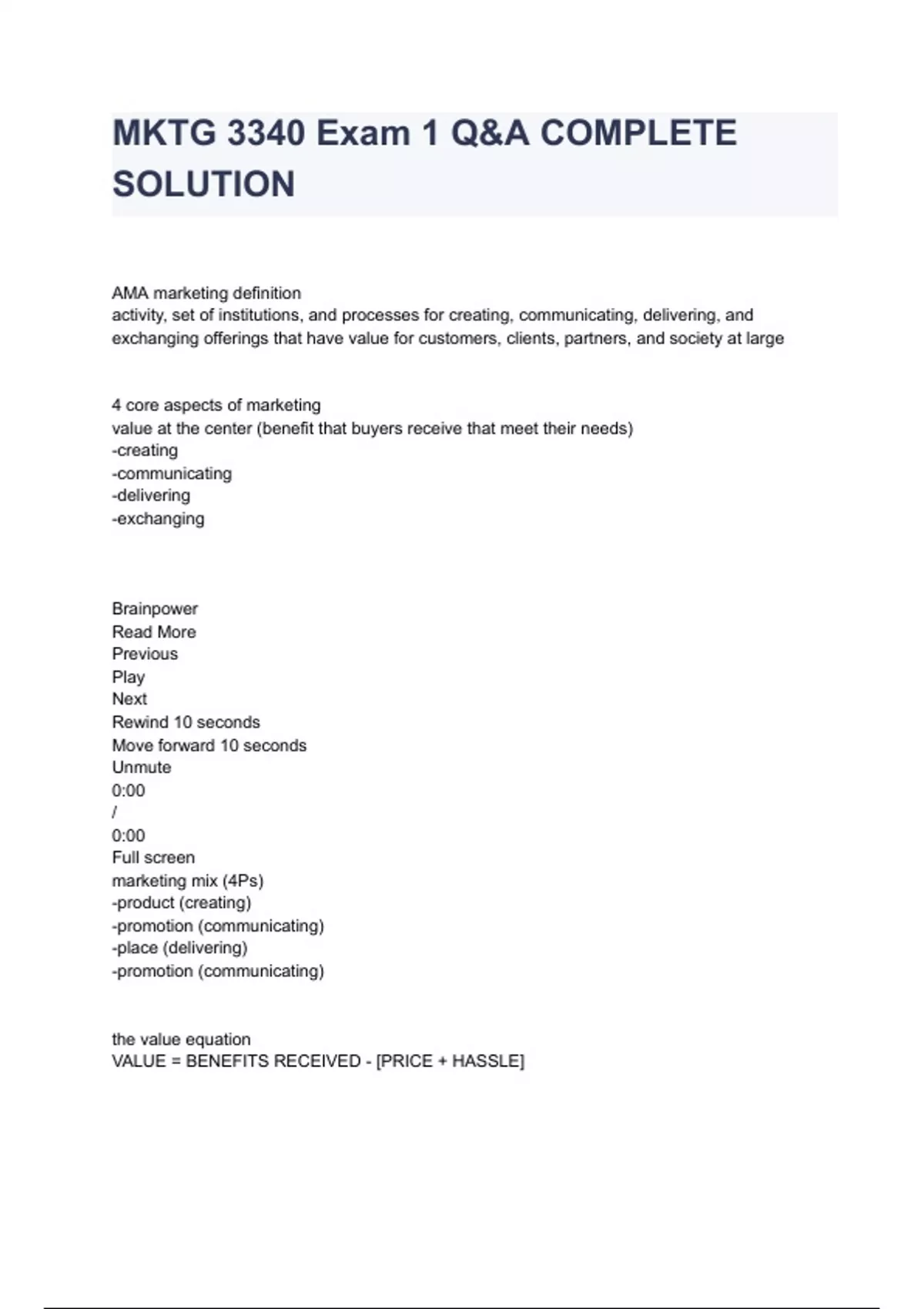 - MKTG 3340 Ex 1 Q&A COMPLETE SOLUTION