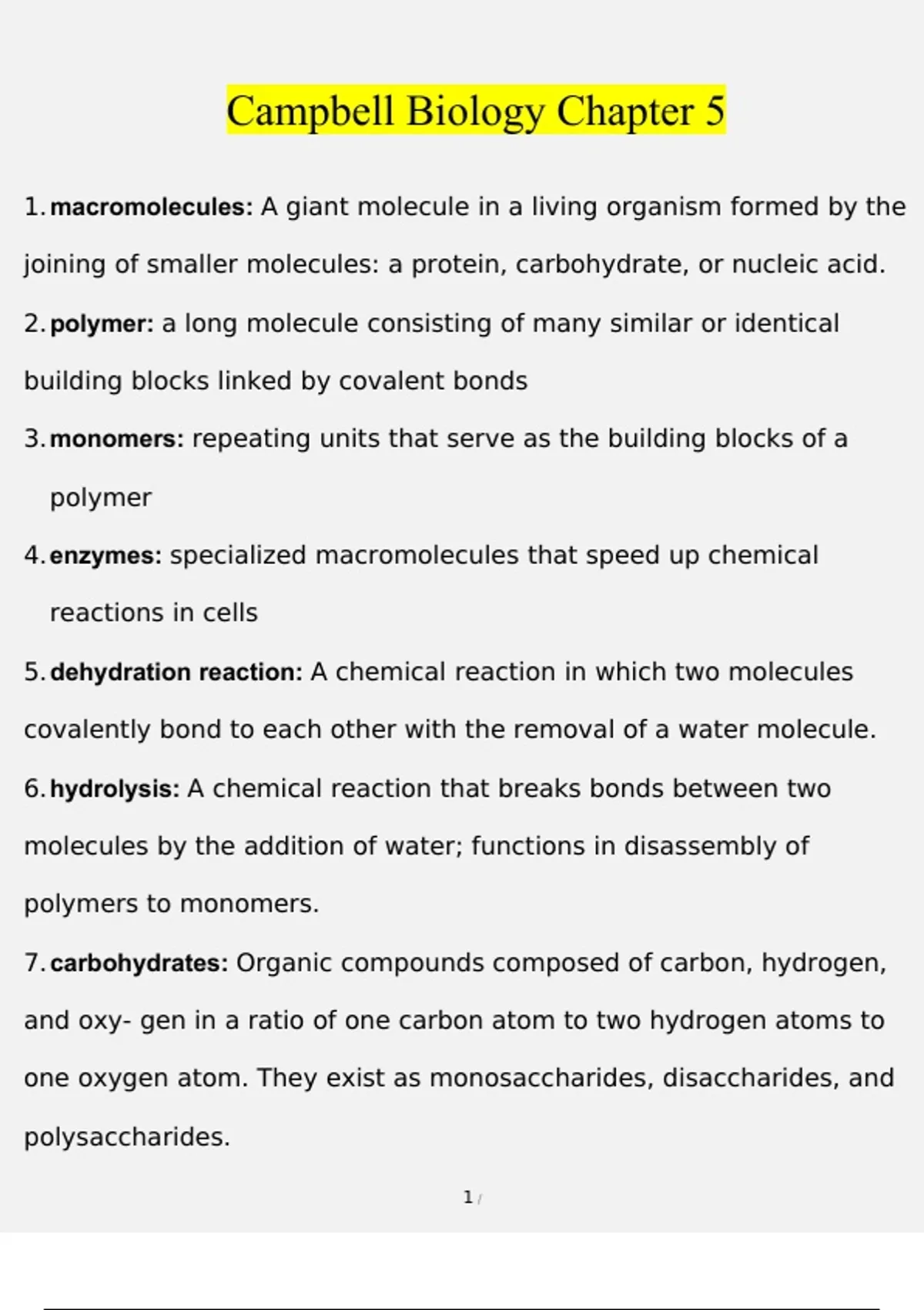 Complete Test Bank Campbell Biology 11 edition Questions & Answers with rationales (Chapter 5)