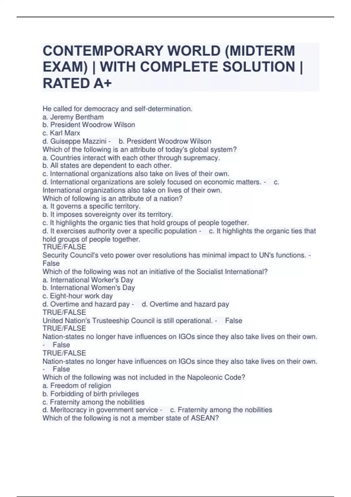 CONTEMPORARY WORLD (MIDTERM EXAM) | WITH COMPLETE SOLUTION | RATED A+