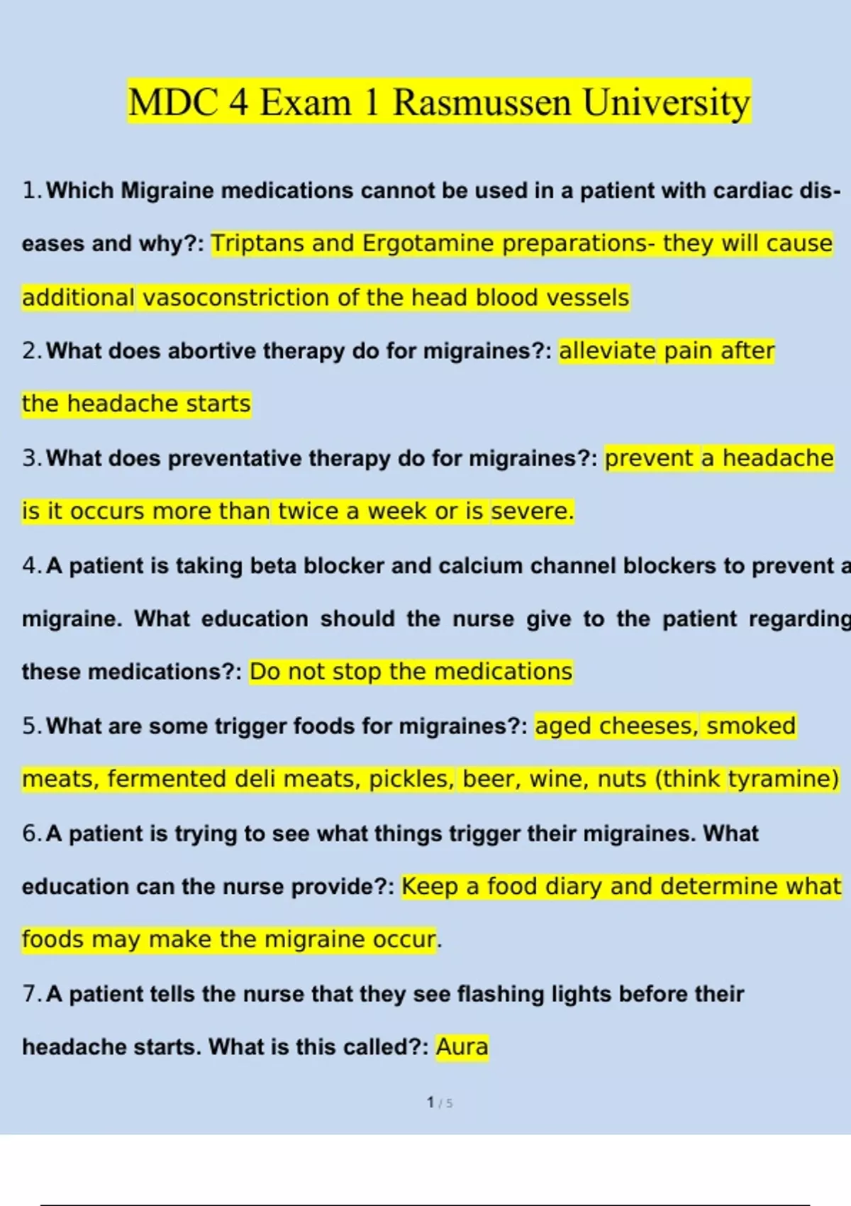 NUR 2502 NUR2502 MDC 4 Exam 1 Rasmussen University
