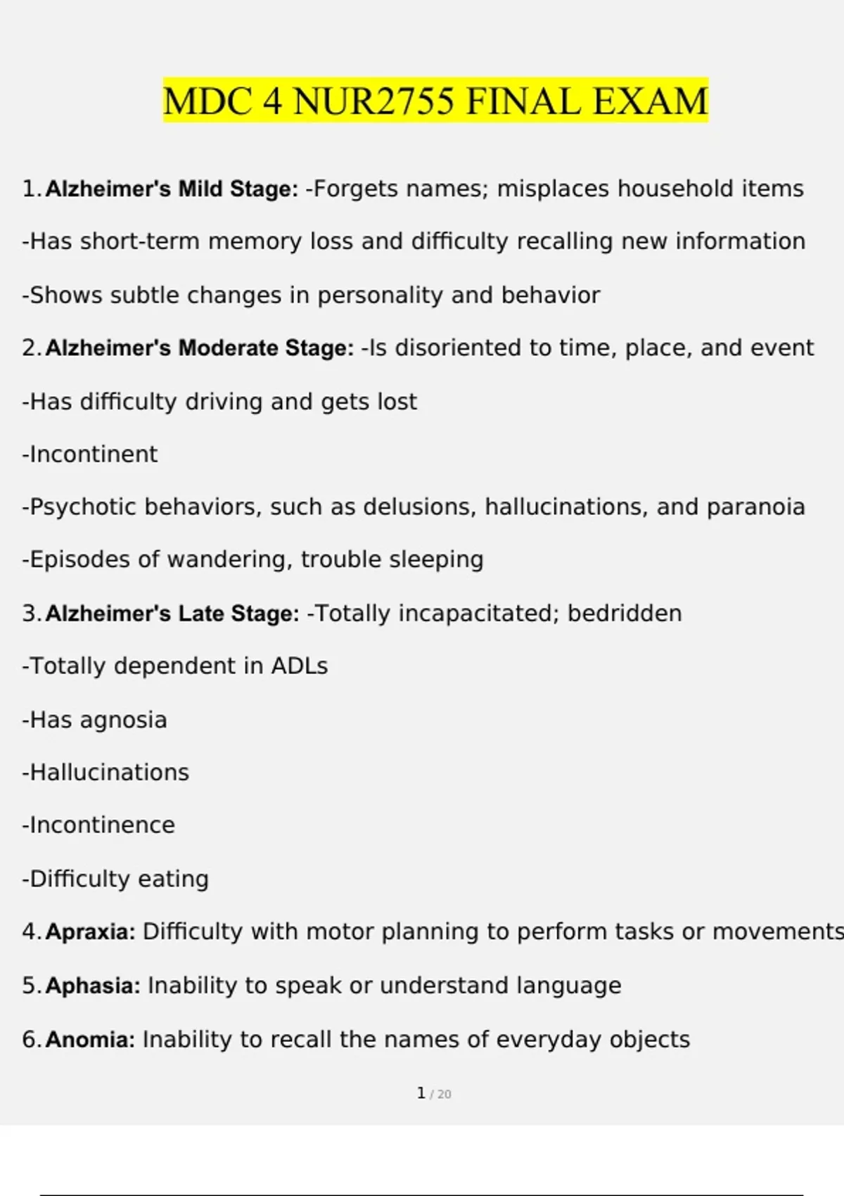 NUR2755 NUR2755 Final Exam (Latest ) Multidimensional Care 4 MDC 4 - Rasmussen