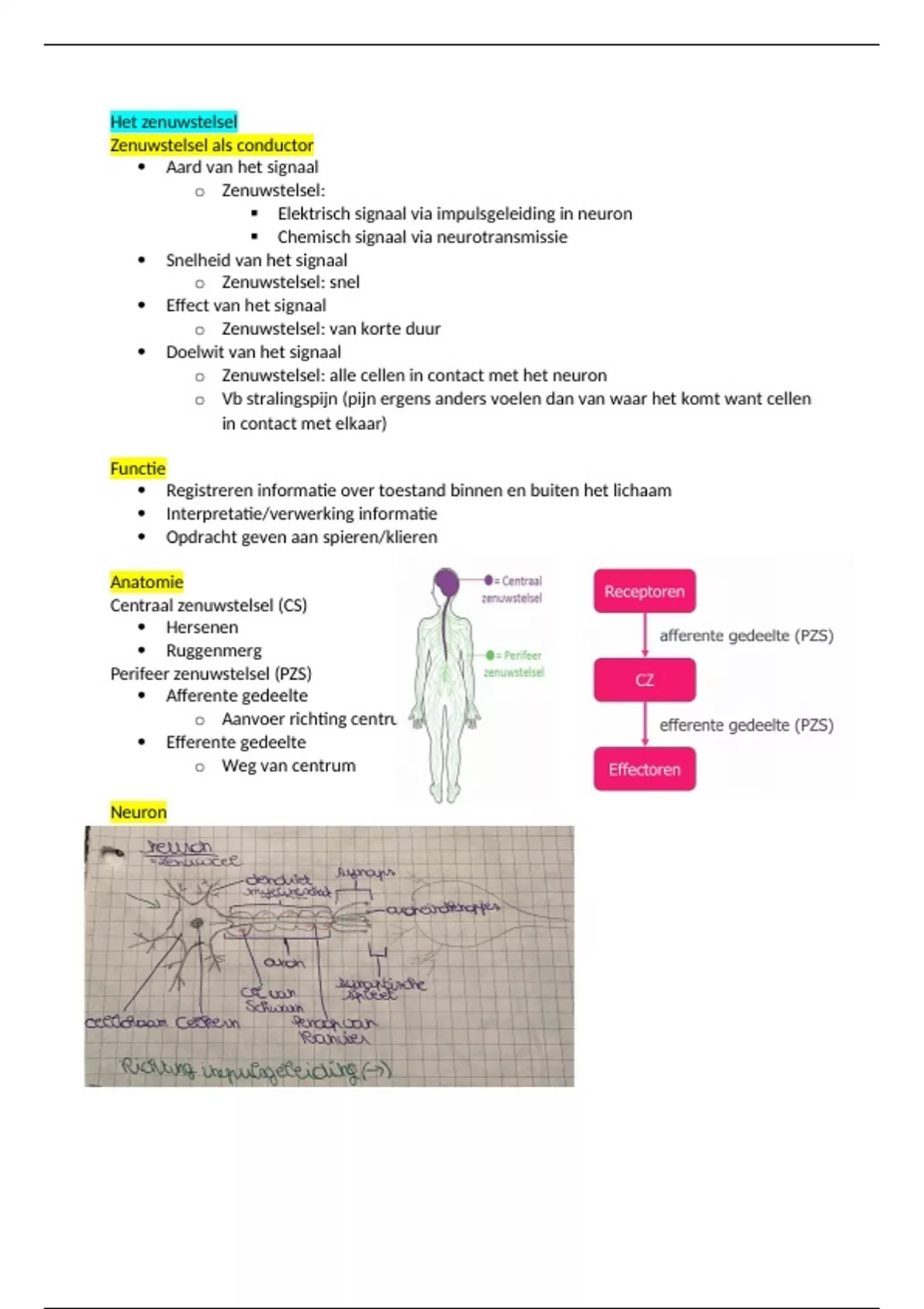 o Zenuwstelsel: alle cellen in contact met het neuron