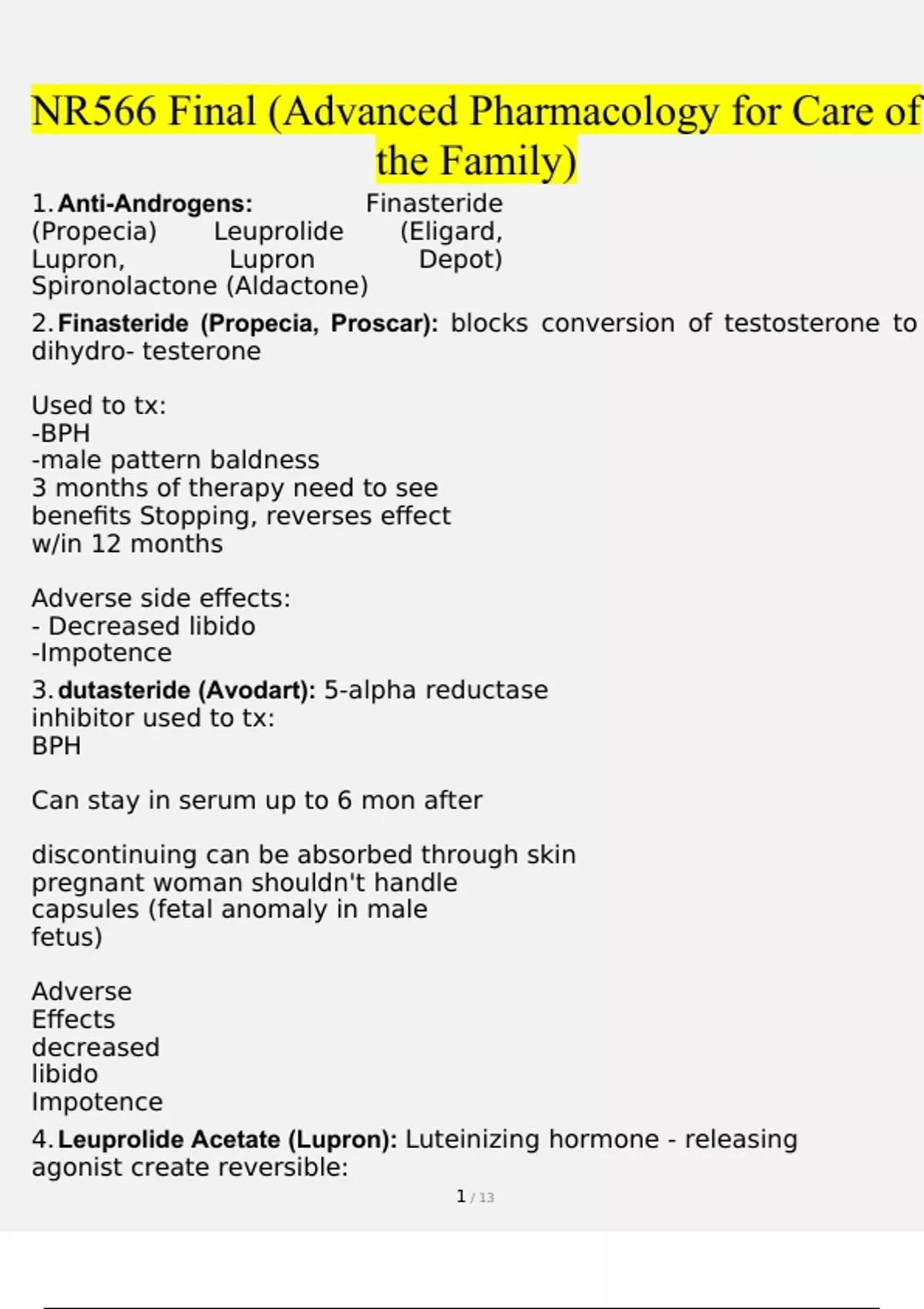 nr566 final exam advanced pharmacology for care