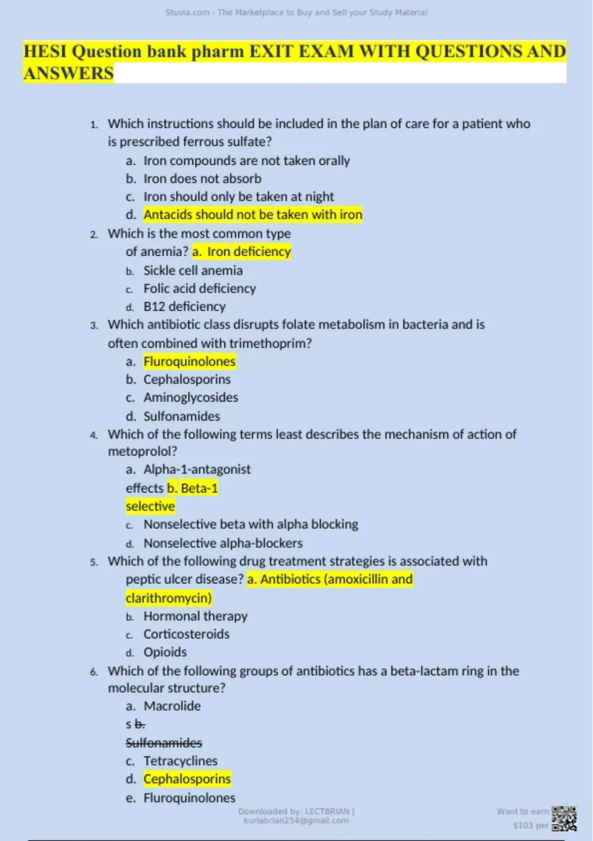 HESI Question bank pharm EXIT EXAM WITH QUESTIONS AND ANSWERS LATEST VERSION UPDATED