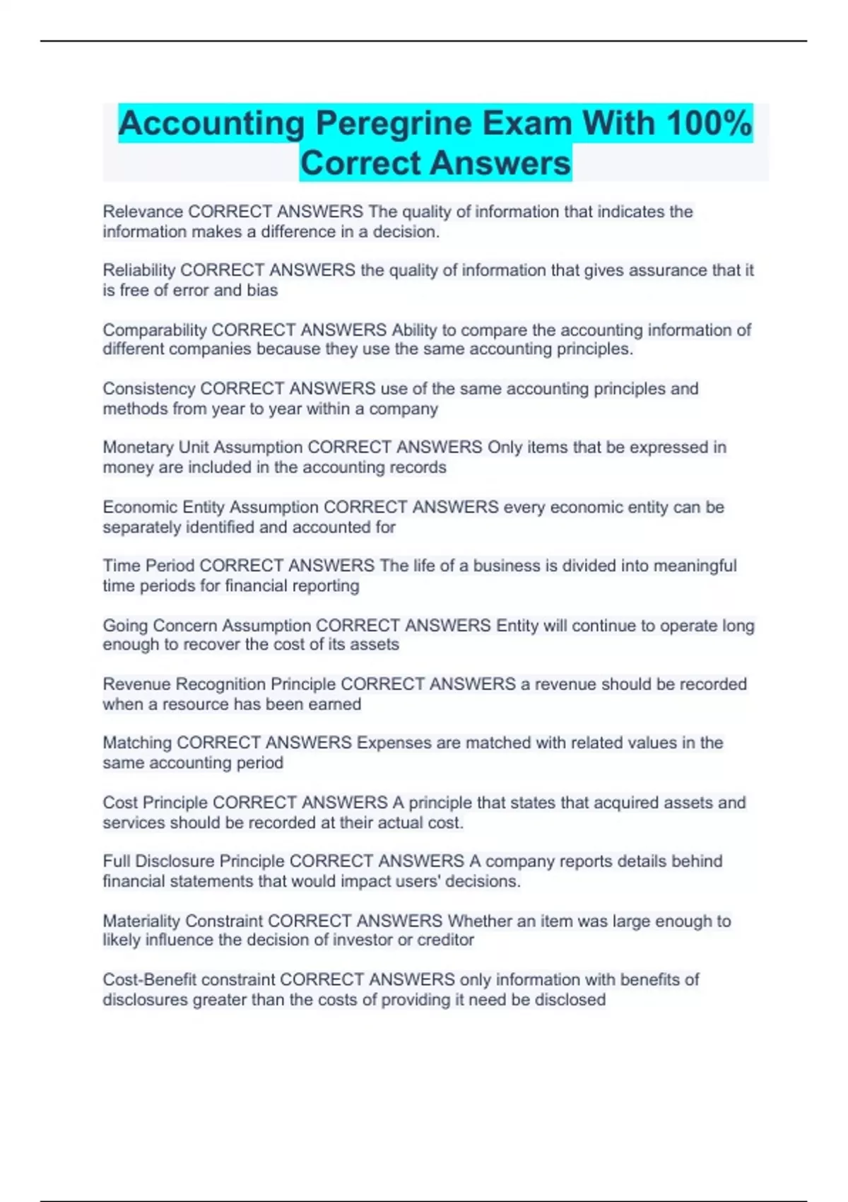 Accounting Peregrine Exam With 100% Correct Answers