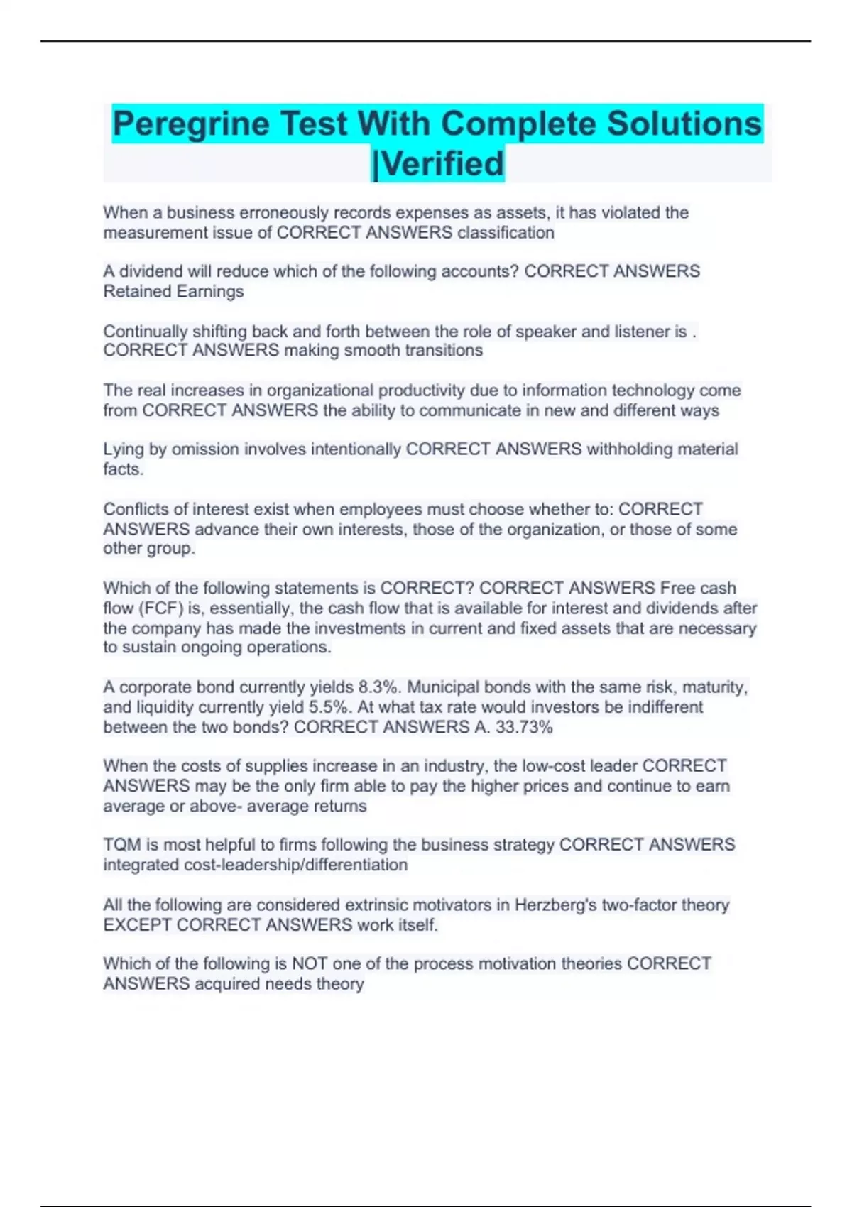 Peregrine Test With Complete Solutions |Verified
