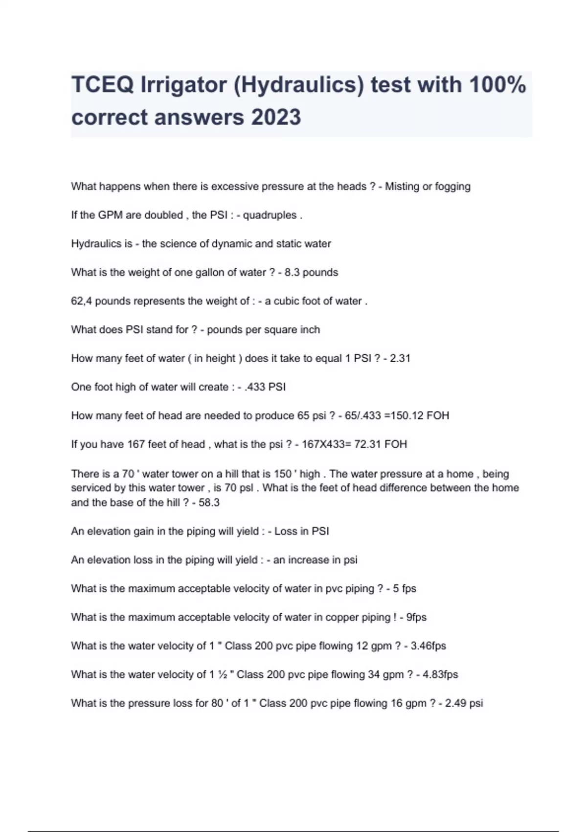 TCEQ Irrigator (Hydraulics) test with 100% correct answers 2023