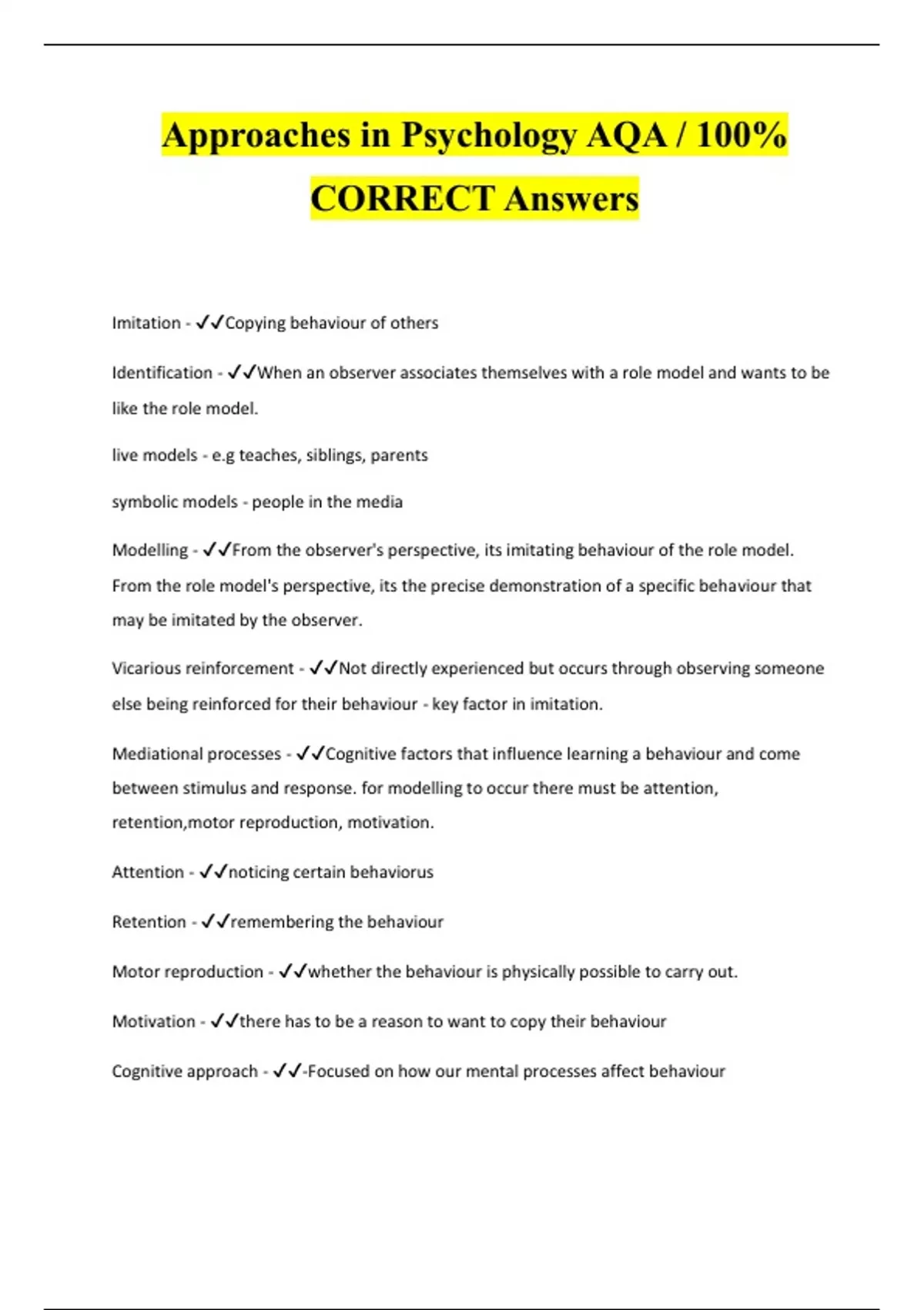 Approaches in Psychology AQA / 100% CORRECT Answers