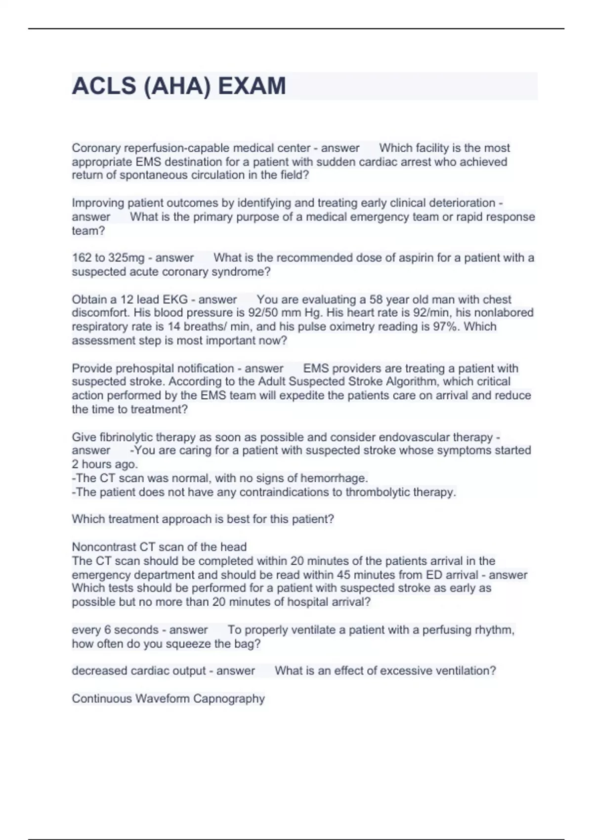 Exam of 2 pages for the course AHA ACLS at AHA ACLS (ACLS)