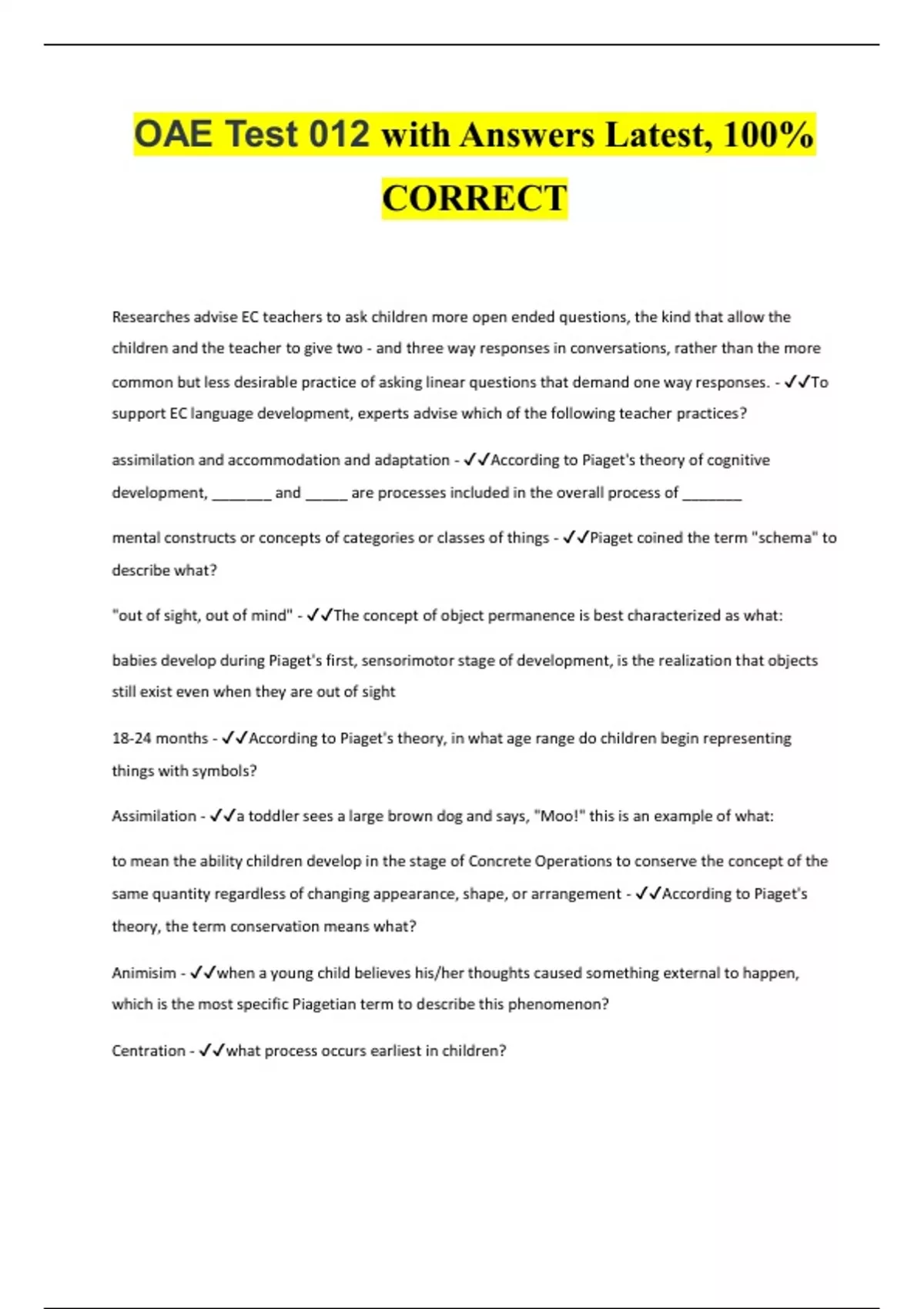 OAE Test 012 with Answers Latest, 100% CORRECT