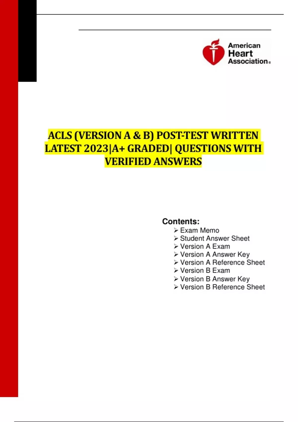 ACLS (VERSION A & B) FINAL TEST|WRITTEN TEST| LATEST 2023|A+ GRADED| QUESTIONS WITH VERIFIED ANSWERS