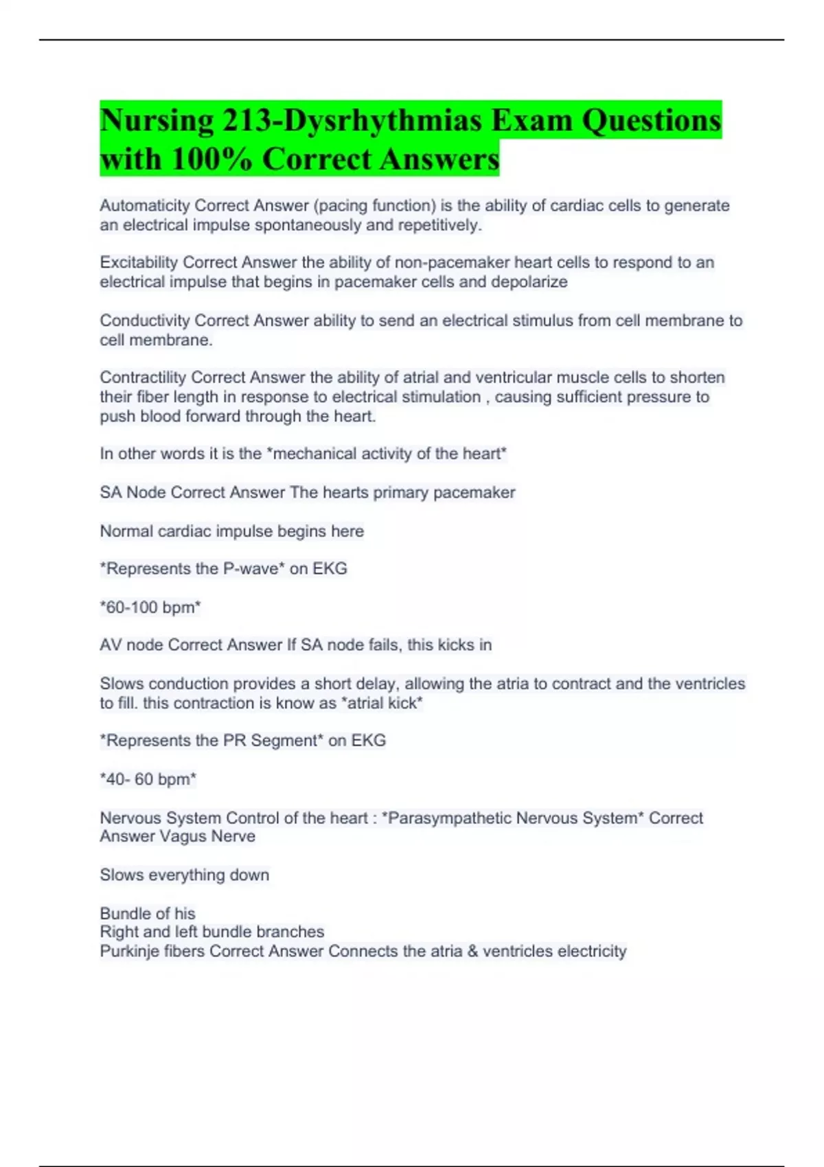 Nursing 213-Dysrhythmias Exam Questions with 100% Correct Answers