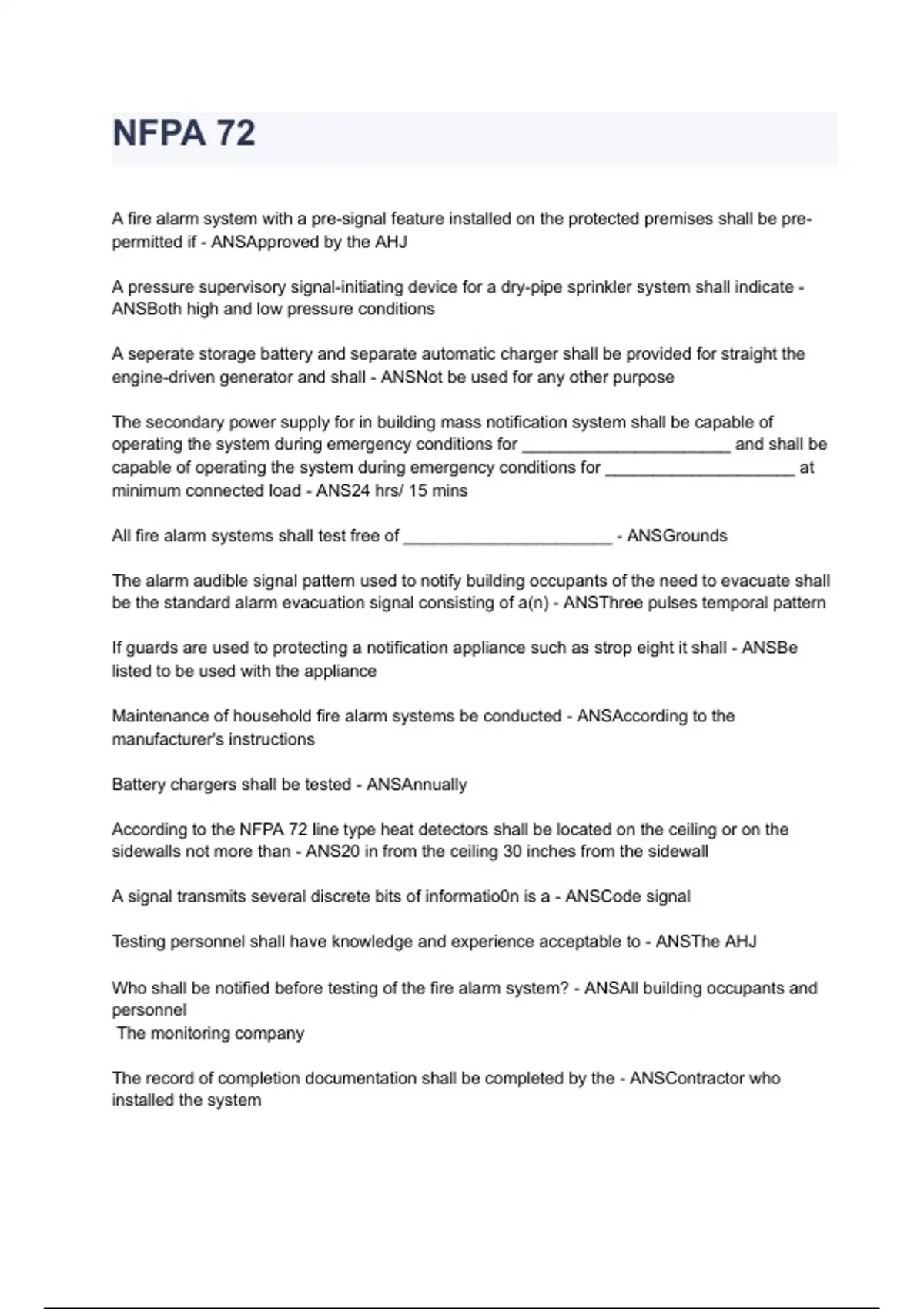 The record of completion documentation shall be completed by the - ANSContractor who