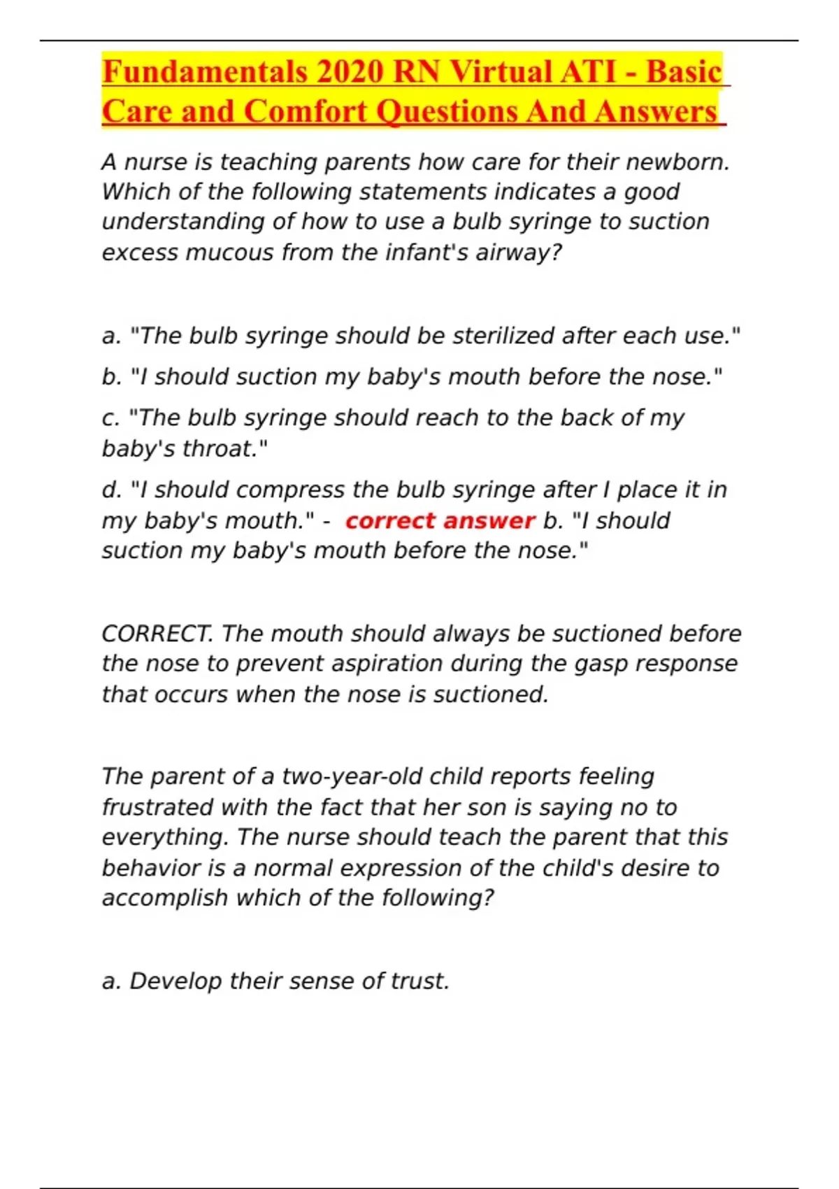 Fundamentals 2020 RN Virtual ATI - Basic Care and Comfort Questions And Answers