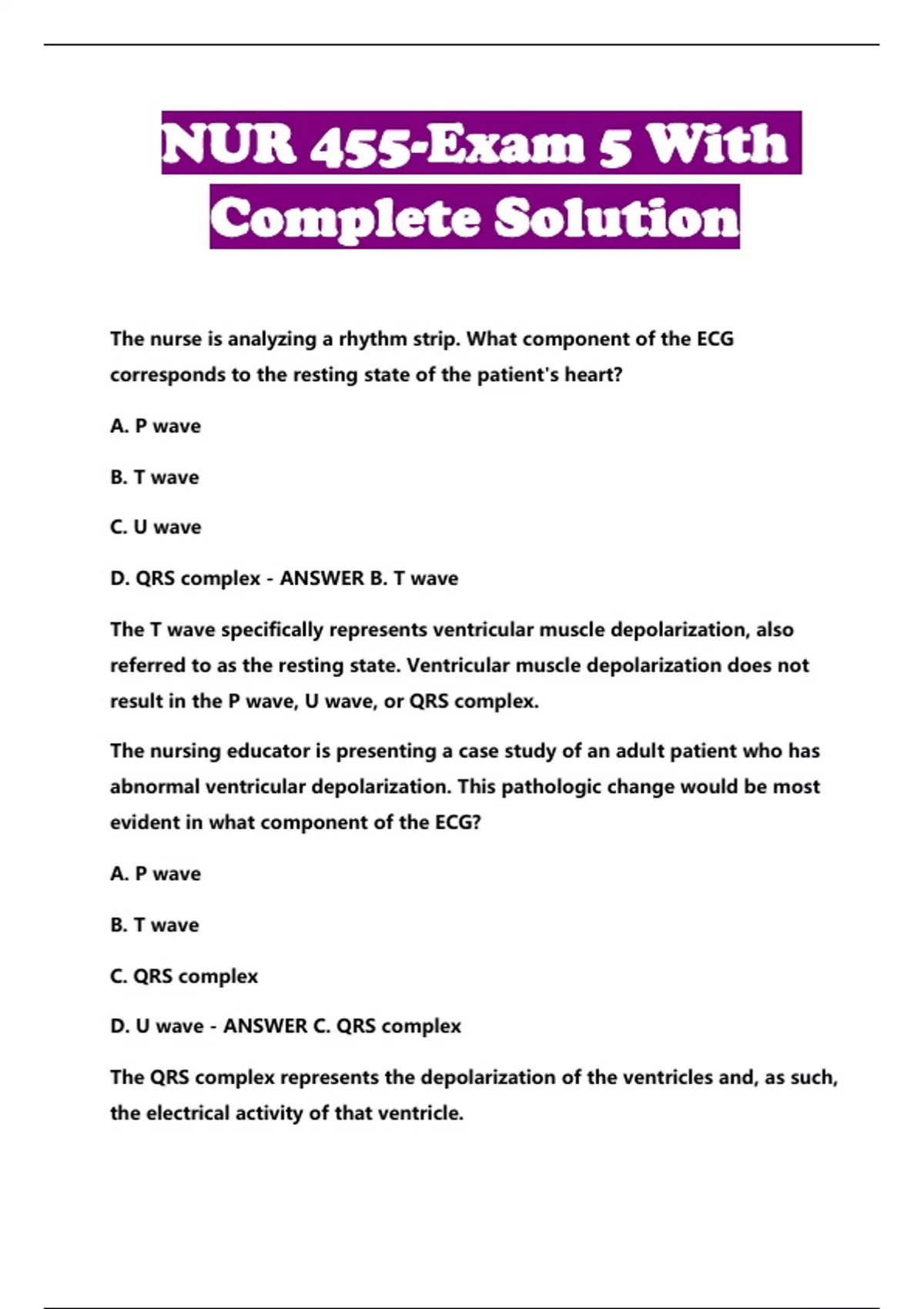 NUR 455-Exam 5 With Complete Solution