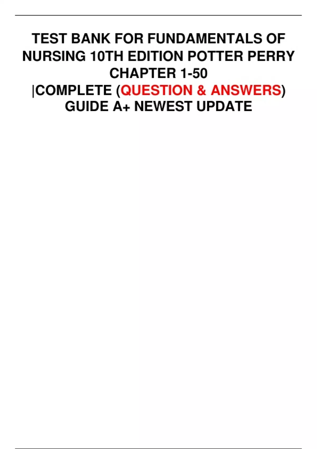TEST BANK FOR FUNDAMENTALS OF NURSING 10TH EDITION POTTER PERRY CHAPTER 1-50 |COMPLETE (QUESTION & ANSWERS) GUIDE A+ NEWEST UPDATE