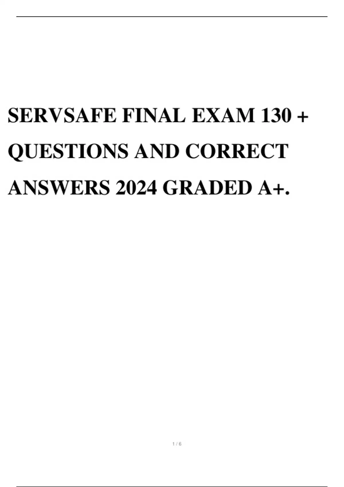 SERVSAFE FINAL EXAM 130 + QUESTIONS AND CORRECT ANSWERS 2024 GRADED A+.