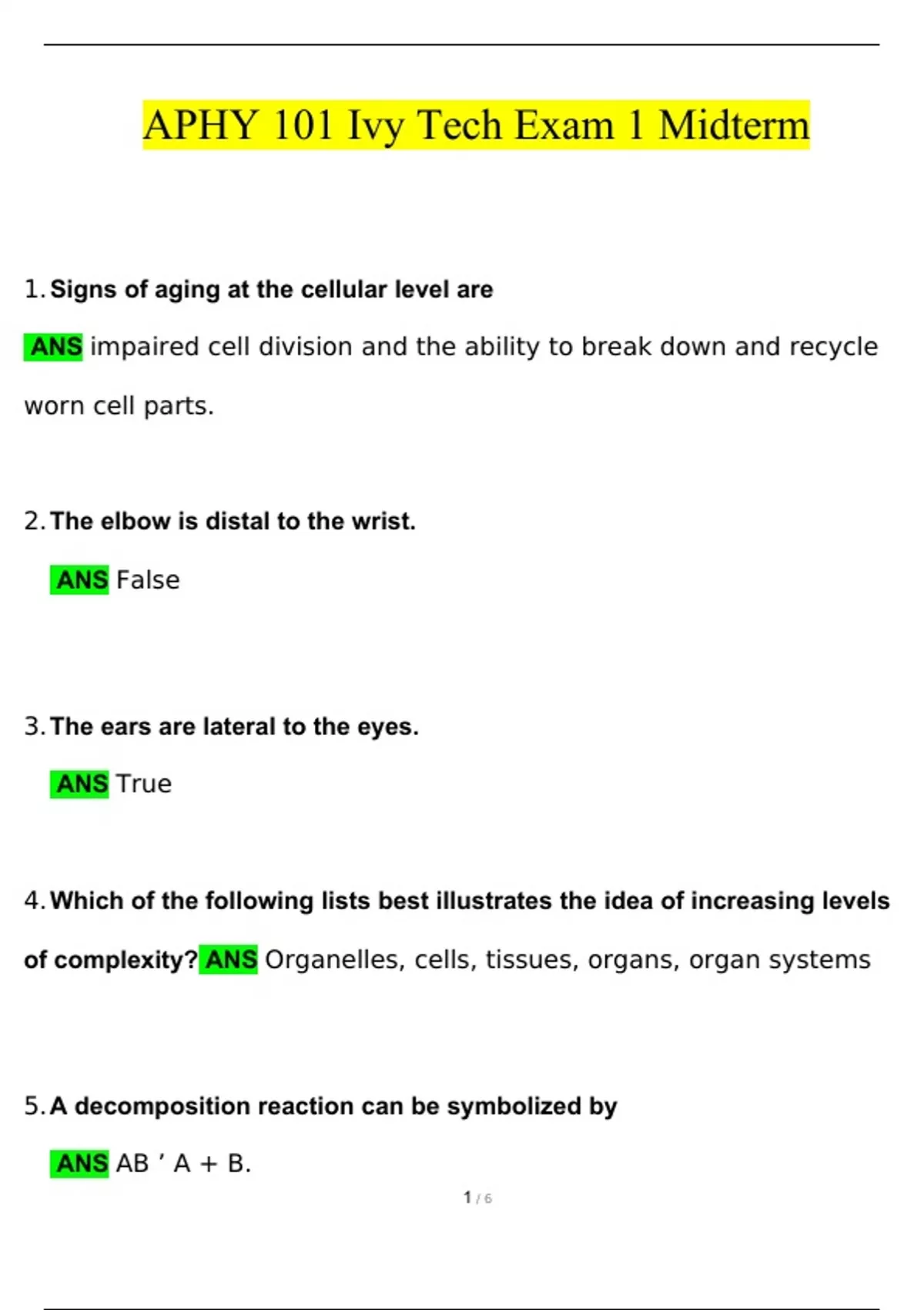 APHY 101 Exam 1 Midterm Latest Questions and Answers (2024 / 2025) (Verified by Expert) APHY 101 Exam 1 Midterm Questions and Answers APHY 101 Exam 1 Midterm 2024 Questions and Answers pdf Aphy 101 midterm 2024 questions and answers Aphy 101 midterm 2024 questions pdf Aphy 101 midterm 2024 answers quizlet ivy tech aphy 101 midterm exam answers pdf student study guide for aphy 101 midterm stuvia aphy 101 ivy tech final exam ivy tech anatomy and physiology 101 study guide