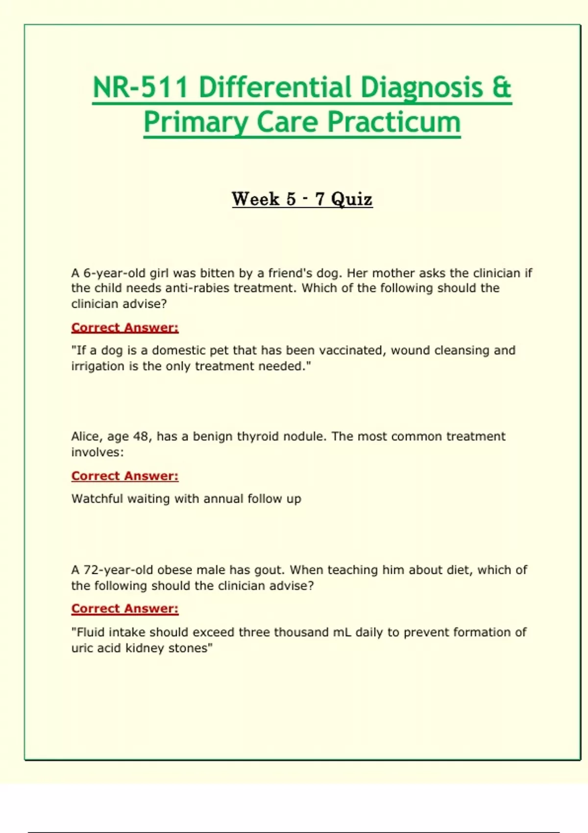 NR511 / NR 511 Week 5 - 7 Quiz (Latest 2024 / 2025): Differential Diagnosis & Primary Care Practicum - Chamberlain