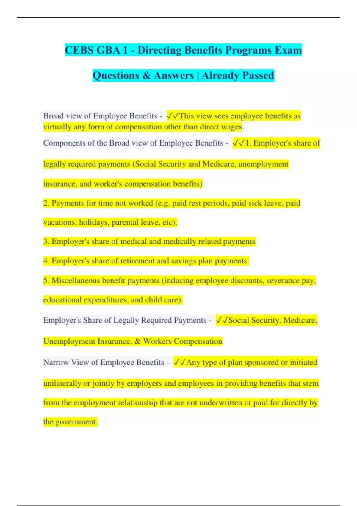 CEBS GBA 1 - Directing Benefits Programs Exam Questions & Answers | Already Passed