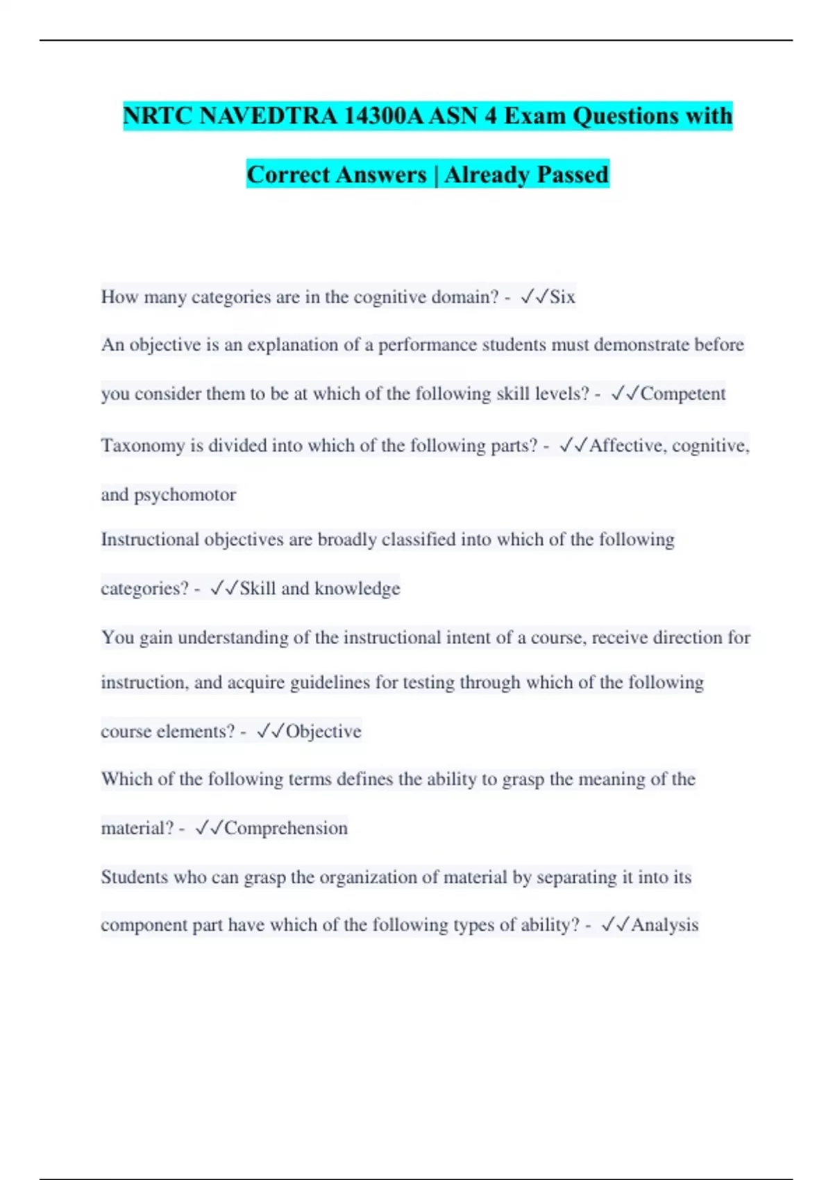NRTC NAVEDTRA 14300A ASN 4 Exam Questions with Correct Answers | Already Passed
