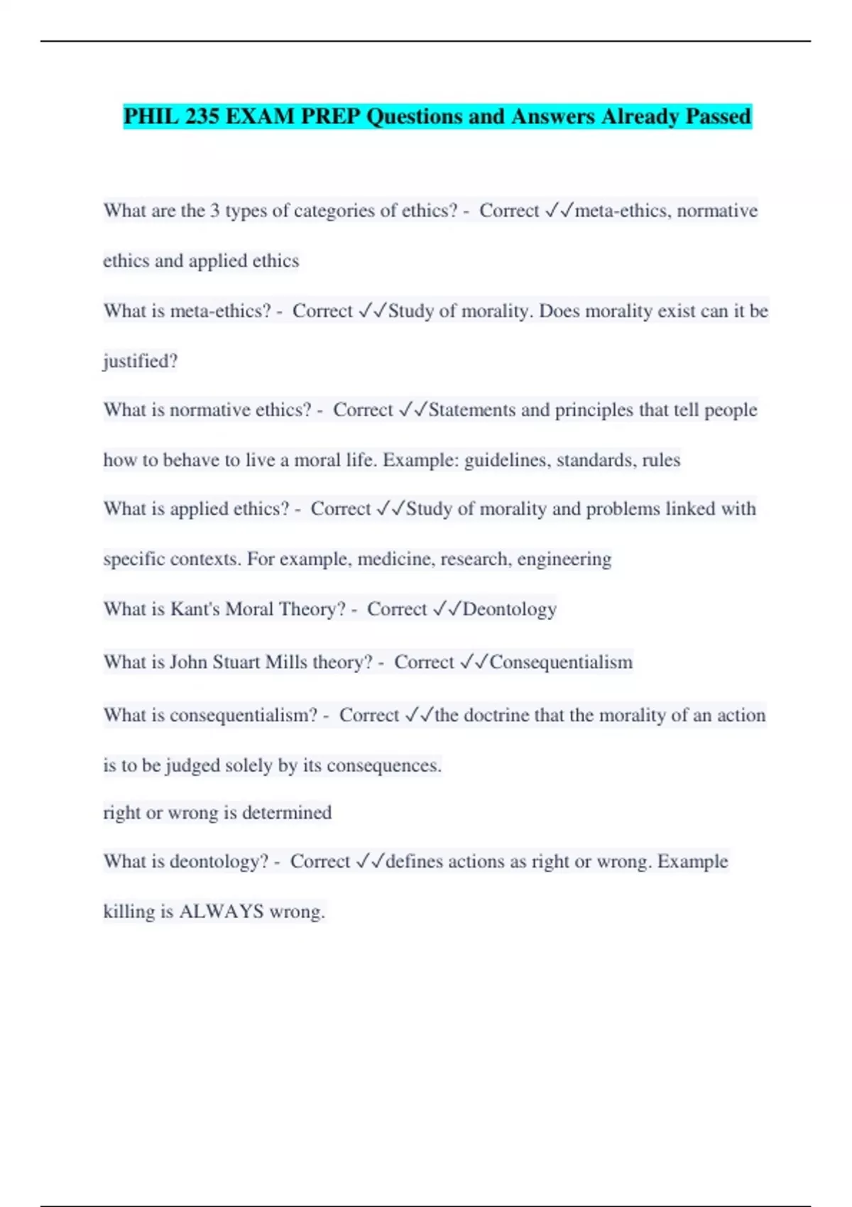 PHIL 235 EXAM PREP Questions and Answers Already Passed
