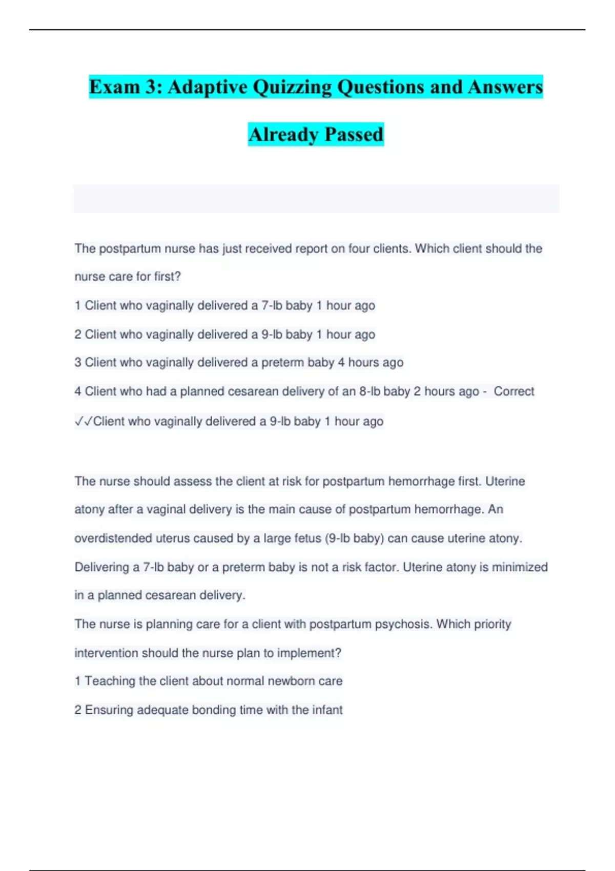 Exam 3: Adaptive Quizzing Questions and Answers Already Passed