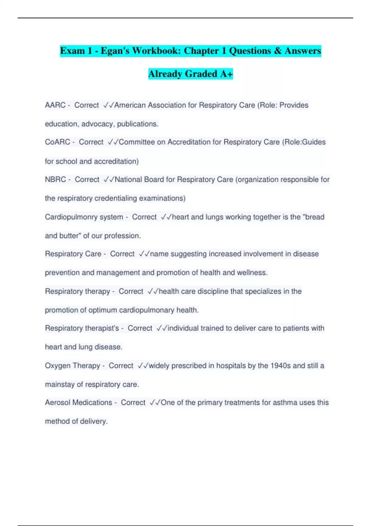 Exam 1 - Egan's Workbook: Chapter 1 Questions & Answers Already Graded A+