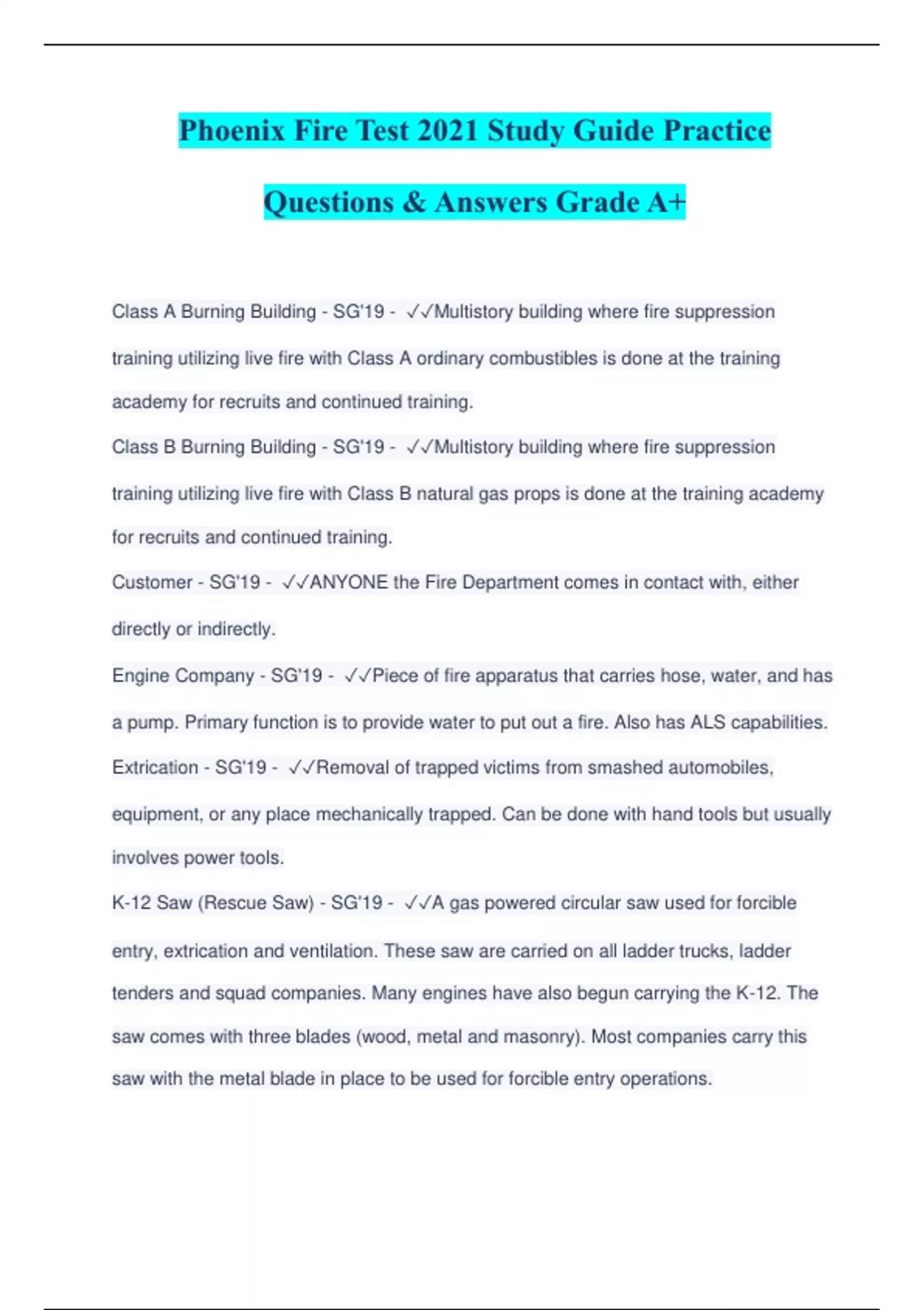Phoenix Fire Test 2021 Study Guide Practice Questions & Answers Grade A+