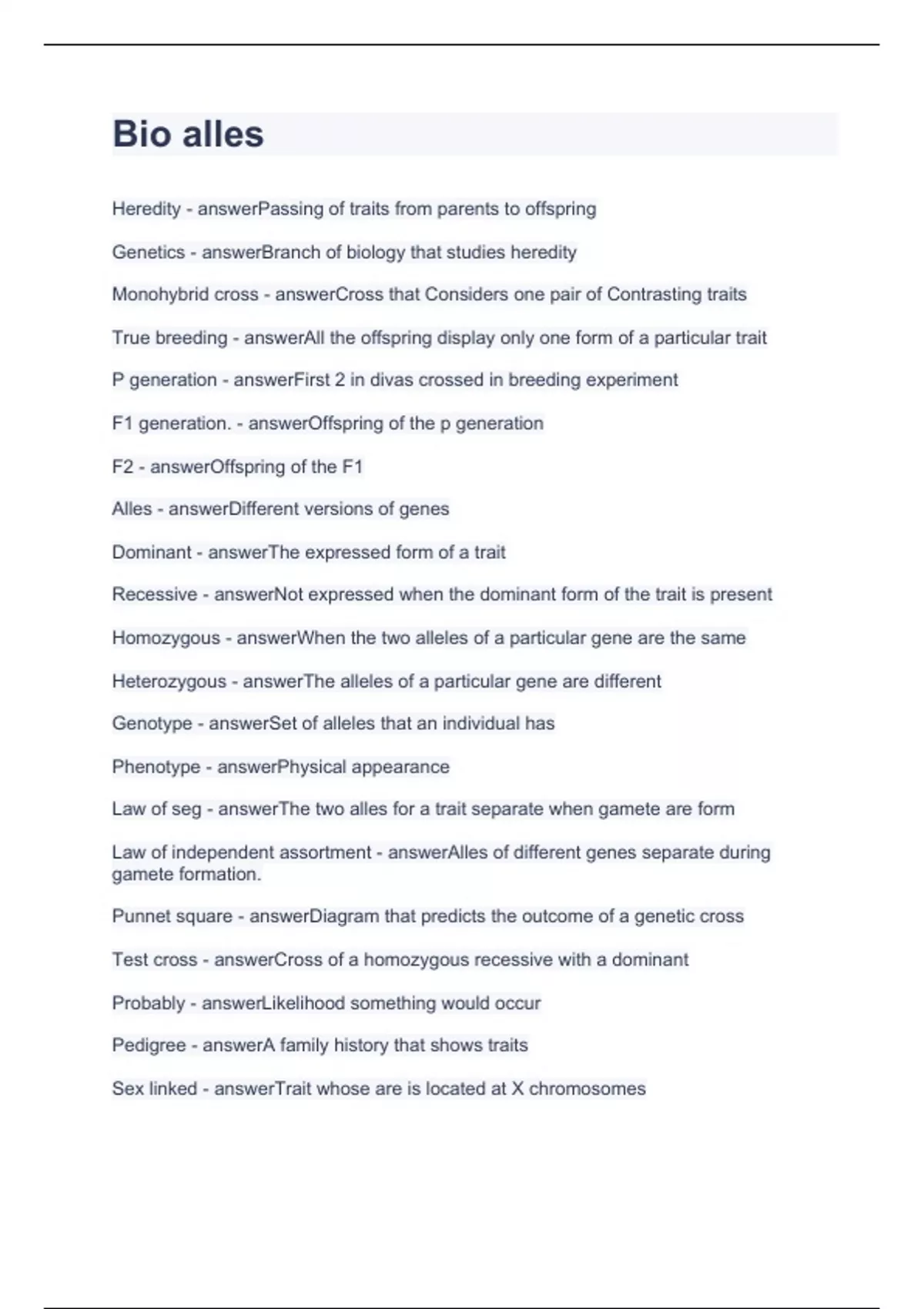 Law of independent assortment - answerAlles of different genes separate during
