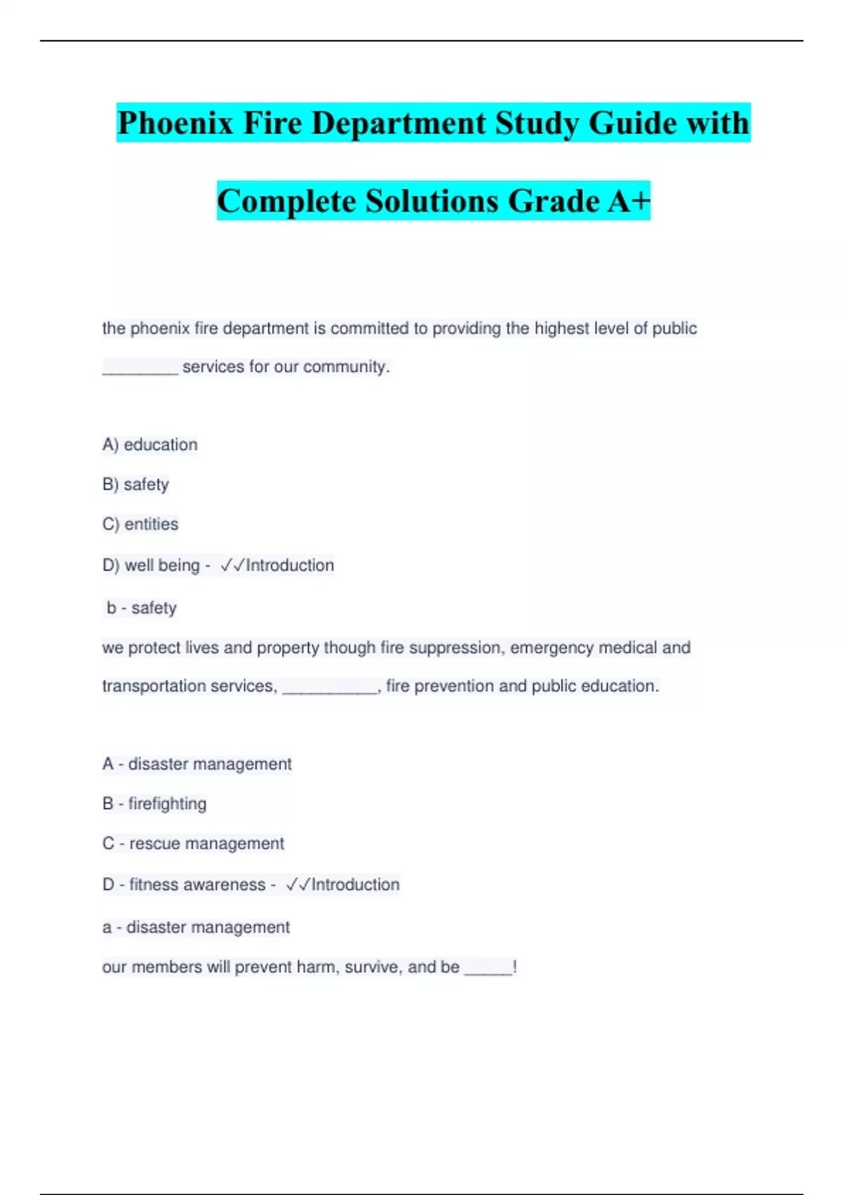Phoenix Fire Department Study Guide with Complete Solutions Grade A+