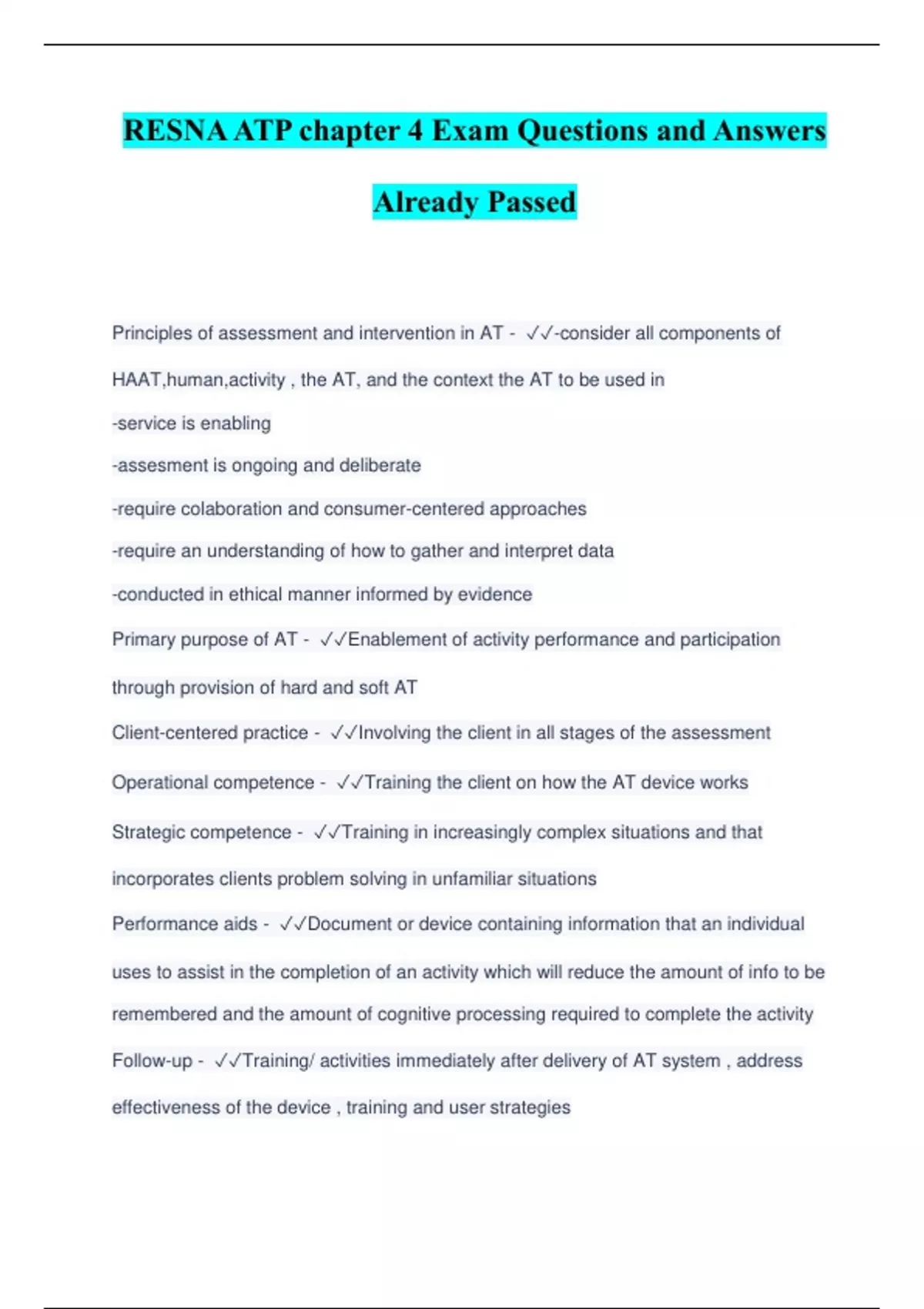 RESNA ATP chapter 4 Exam Questions and Answers Already Passed