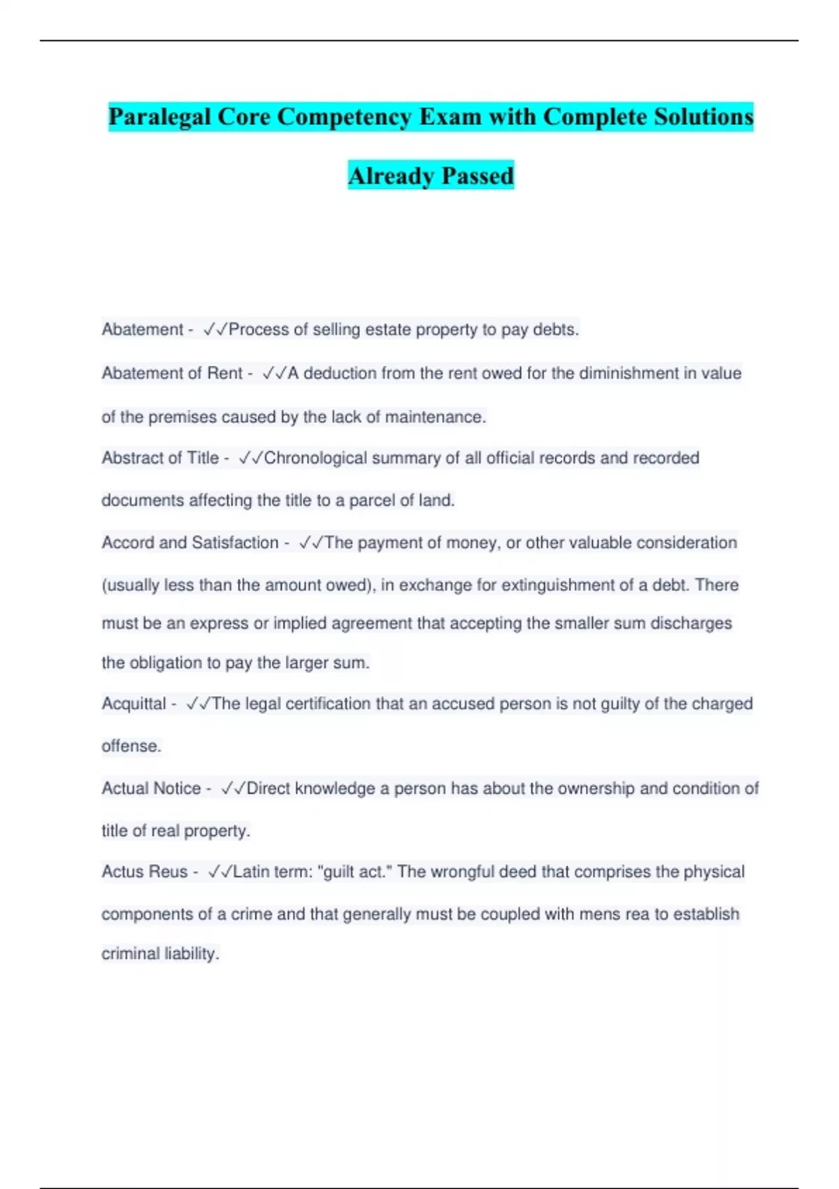 Paralegal Core Competency Exam with Complete Solutions Already Passed