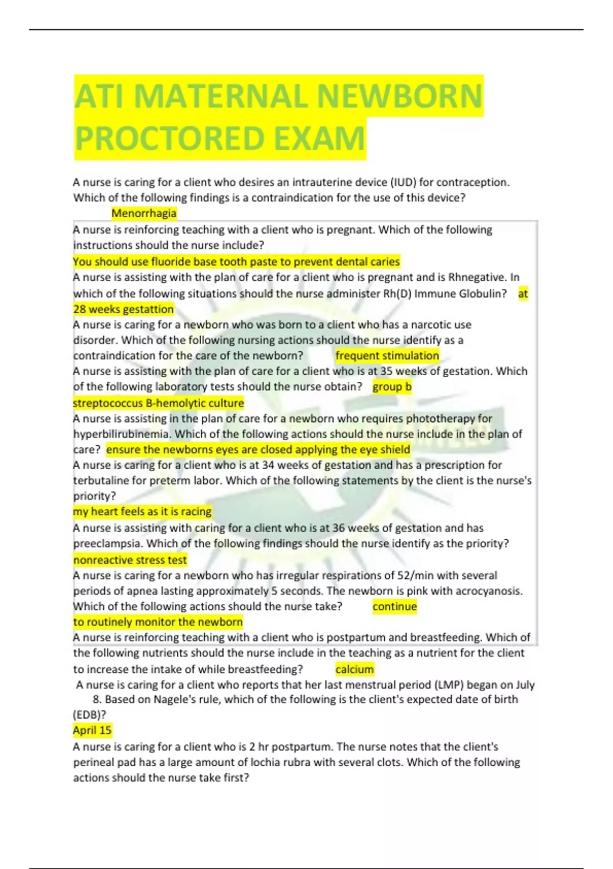 ATI MATERNAL NEWBORN PROCTORED EXAM