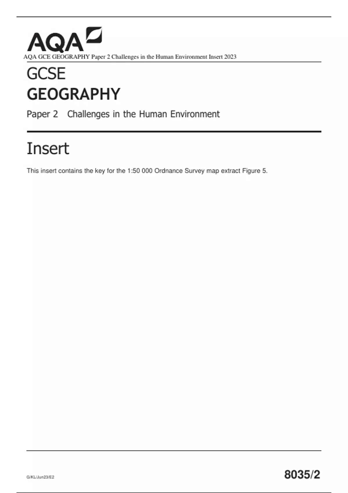 AQA GCE GEOGRAPHY Paper 2 Challenges in the Human Environment Insert 2023