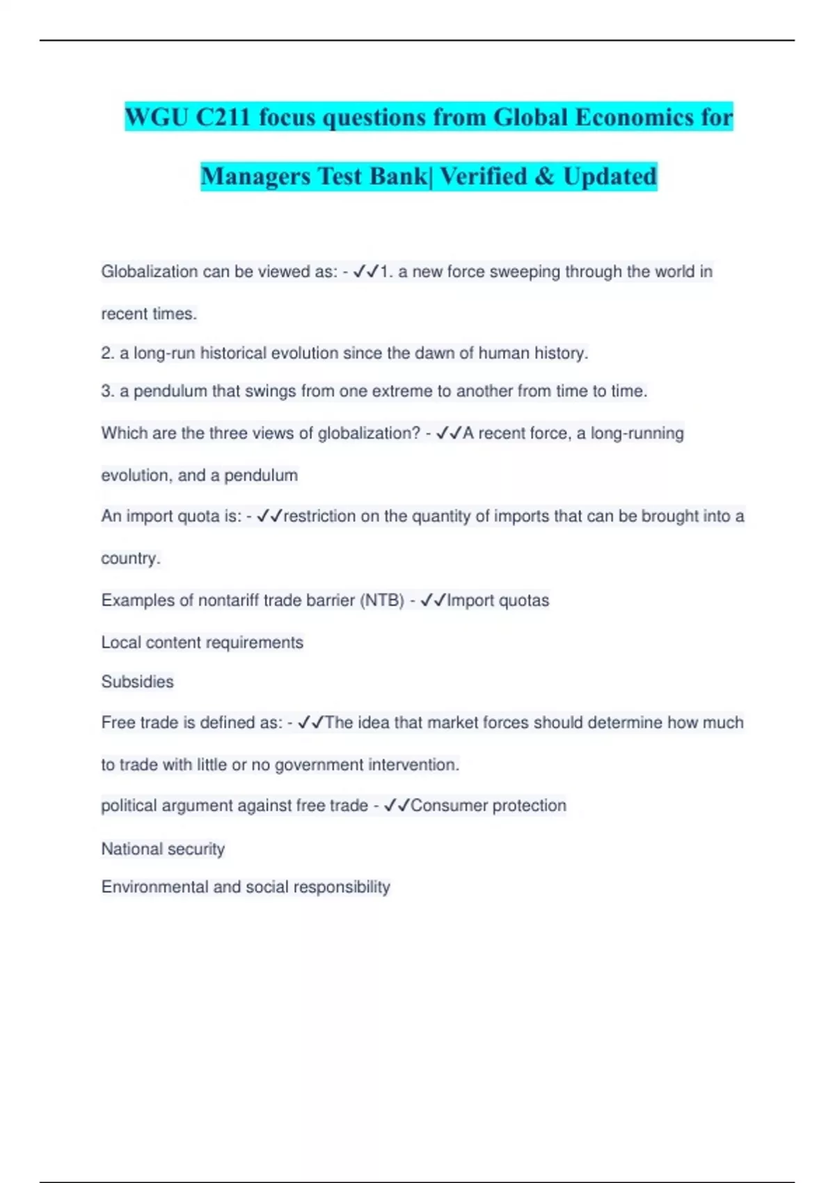 WGU C211 focus questions from Global Economics for Managers Test Bank| Verified & Updated