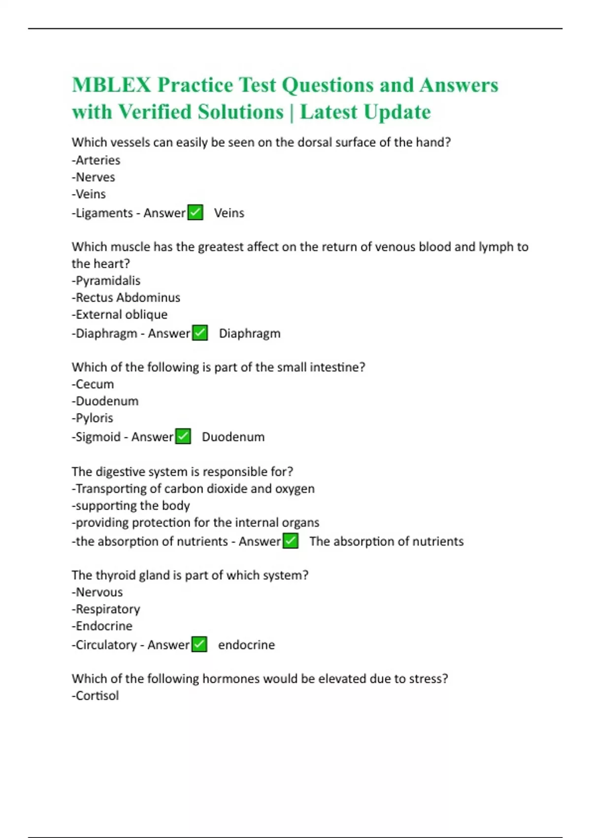 MBLEX BUNDLED ACTUAL EXAM STATE TEST QUESTIONS AND ANSWERS (With Everything you Need to help You Study) | 100% VERIFIED | LATEST UPDATE