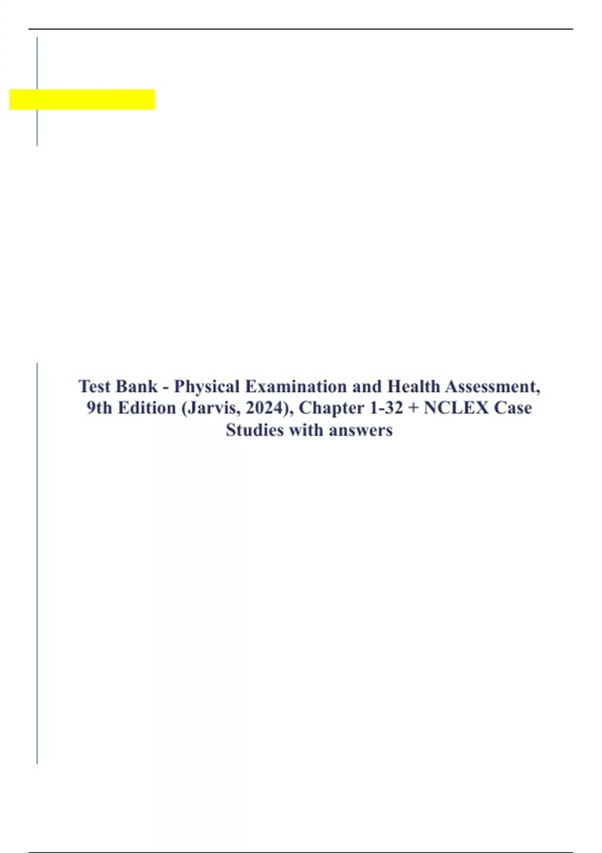 Test Bank - Physical Examination and Health Assessment, 9th Edition (Jarvis, 2024), Chapter 1-32 + NCLEX Case Studies with answers