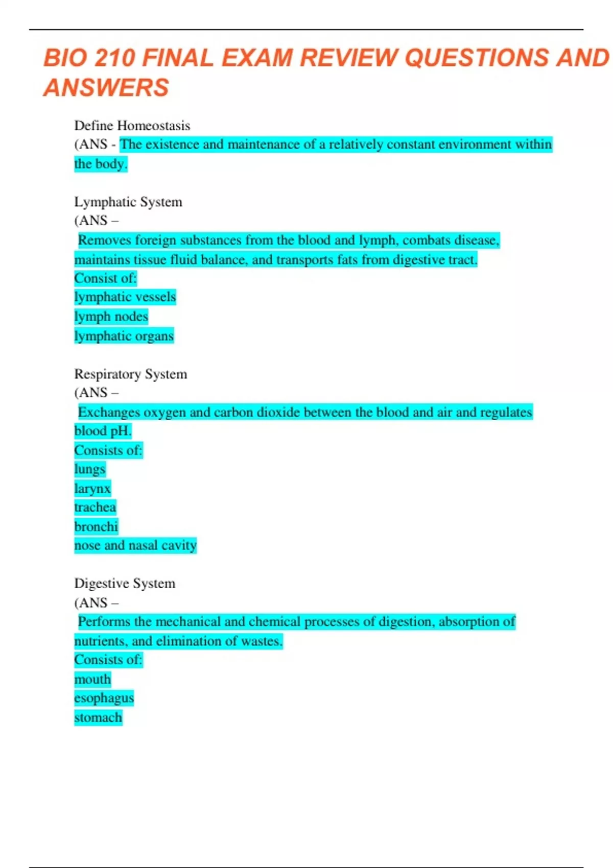 bio 210 exam review questions and answers 100 v